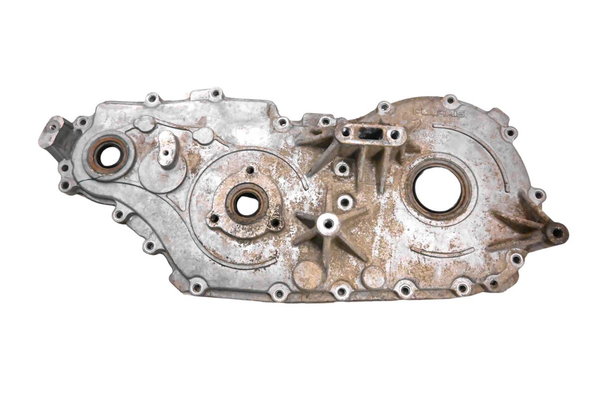 Gear case is in good condition with no cracks or repairs. Mounting holes are in good shape. Internals have been removed. Finish has light wear. Comes as pictured. Was removed from a 1999 Polaris Ranger 500 6x6 and 653 hours.