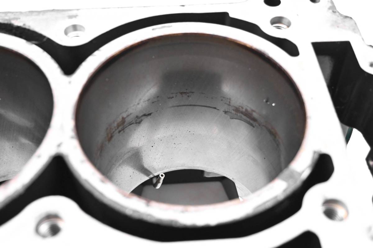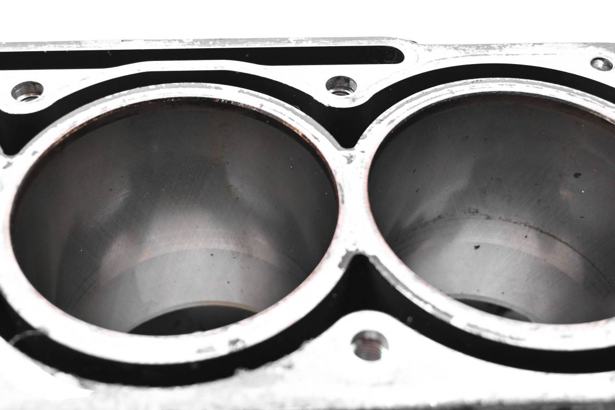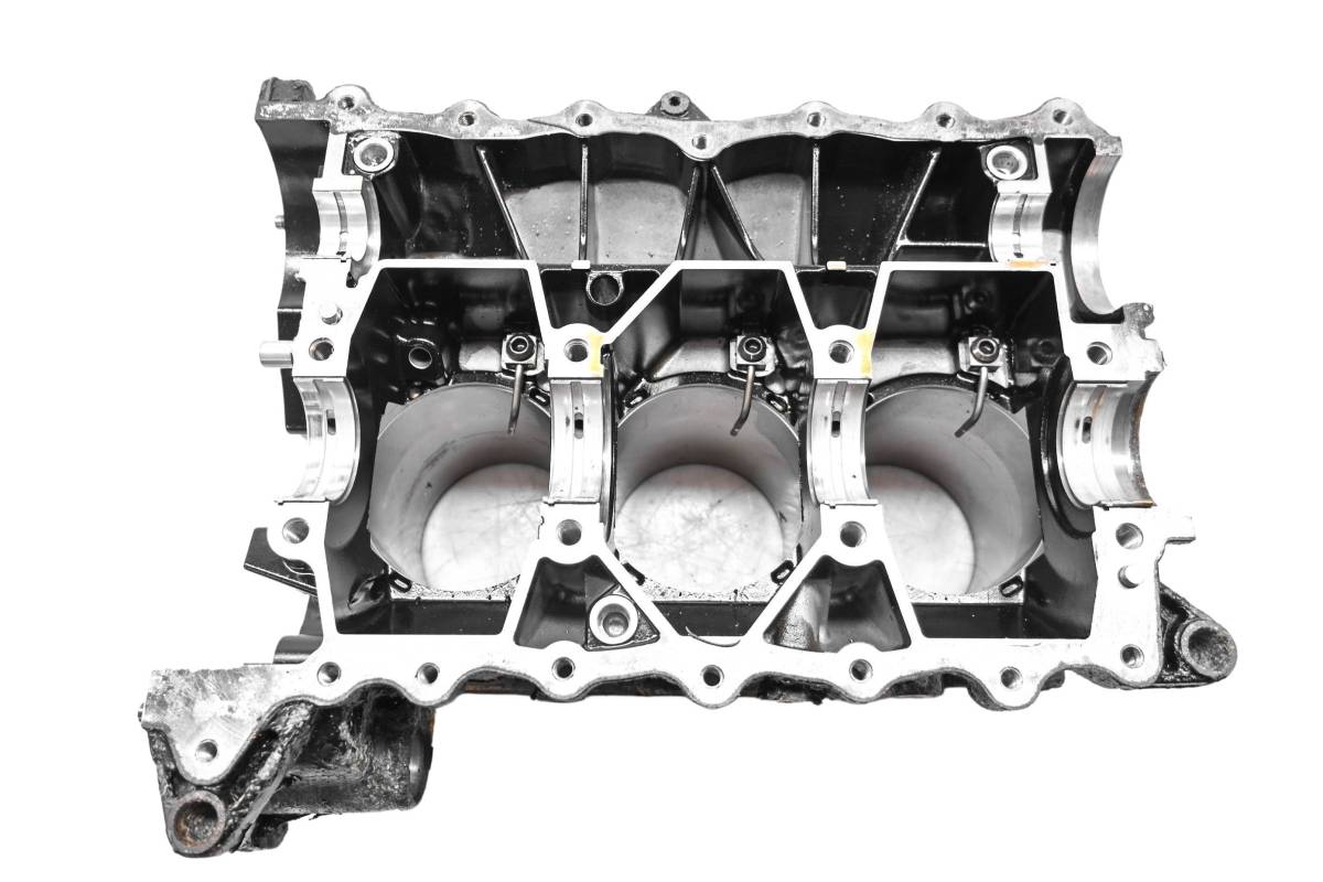Crankcase is in good condition with no cracks or repairs. Finish has light wear. Bearings are good. Cylinder is in good condition. Bore has light wear, could use a ball hone. Bore measures 100mm. Comes as pictured. Was removed from a 2015 Sea-Doo GTX 155 and 152 hours.