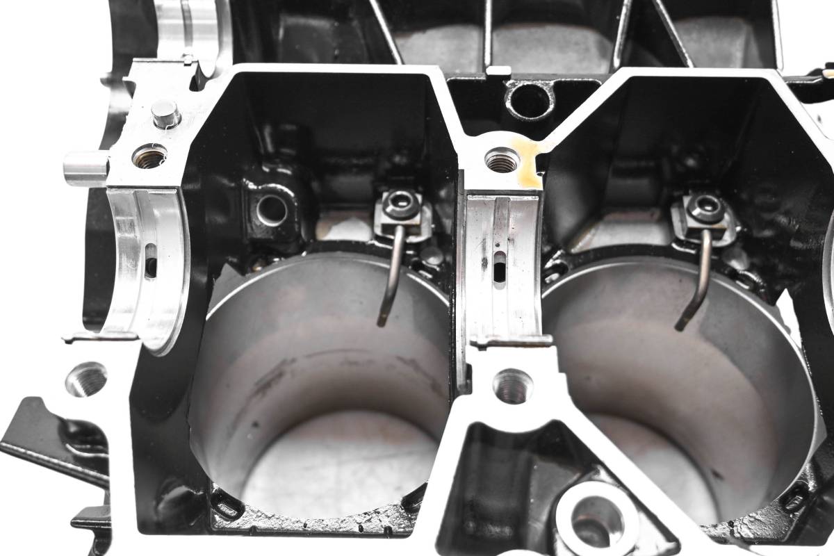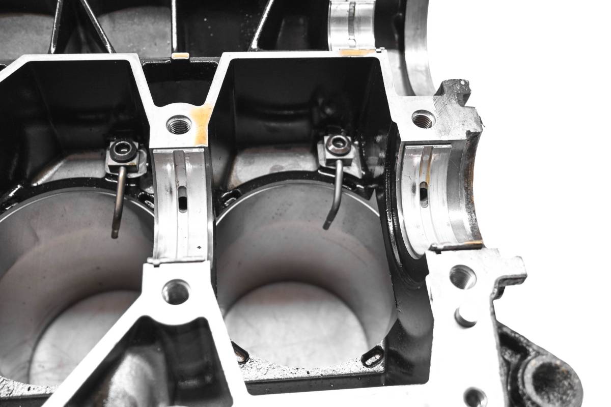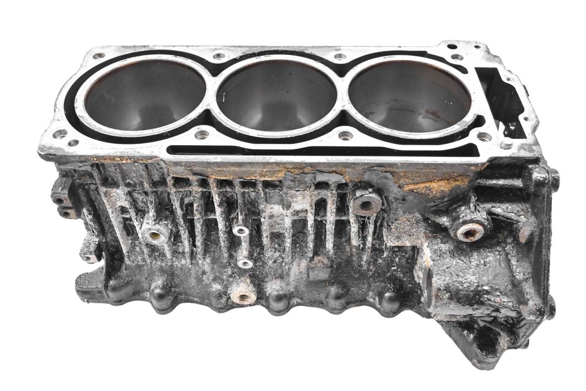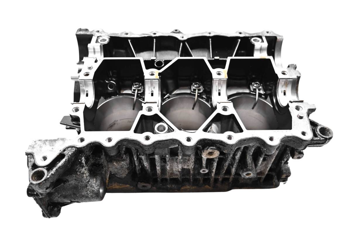 Crankcase is in good condition with no cracks or repairs. Finish has light wear. Bearings are good. Cylinder is in good condition. Bore has light wear, could use a ball hone. Bore measures 100mm. Comes as pictured. Was removed from a 2015 Sea-Doo GTX 155 and 152 hours.