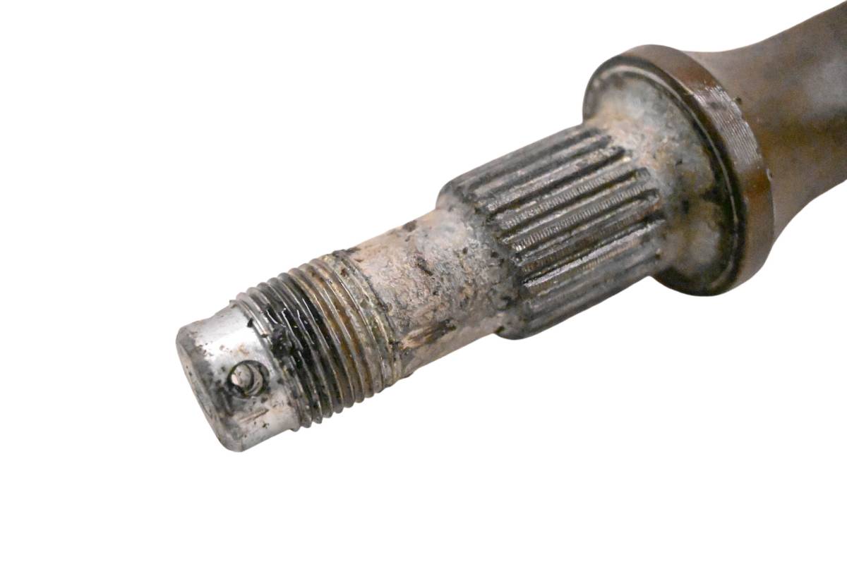 Axle is straight and in good condition. Finish has light wear. Splines and threads are straight. Comes as pictured. Was removed from a 2006 Kawasaki Prairie 360 4x4 KVF360 with 4196 miles and 532.9 hours.