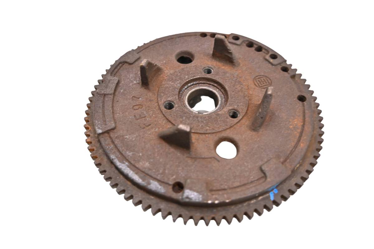 Flywheel is in good working condition. Finish has light wear from use. Comes as pictured. Was removed from a 2001 Polaris Sportsman 500.