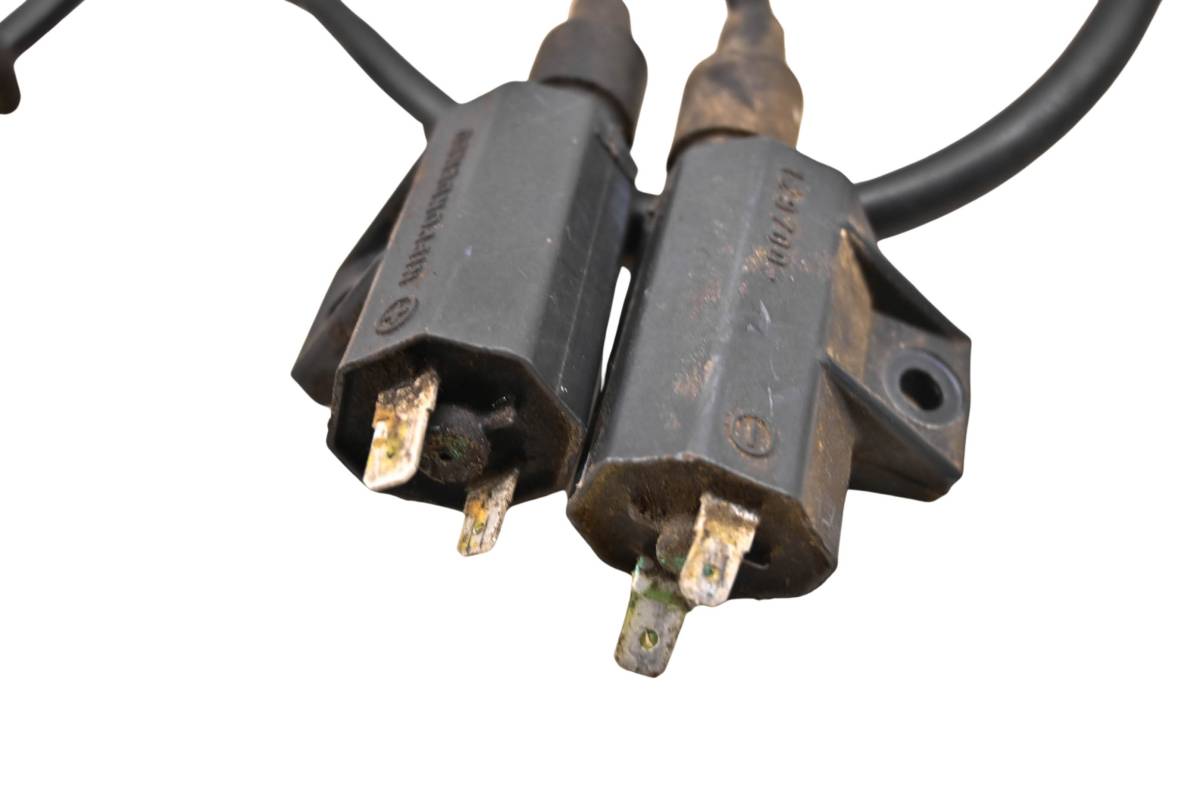 One coil is in good condition. Posts have light wear. Plug caps and end is good. One wire is cut. Comes as pictured. Was removed from a 2002 Kawasaki Prairie 650 4x4 KVF650 with 2420 miles.
