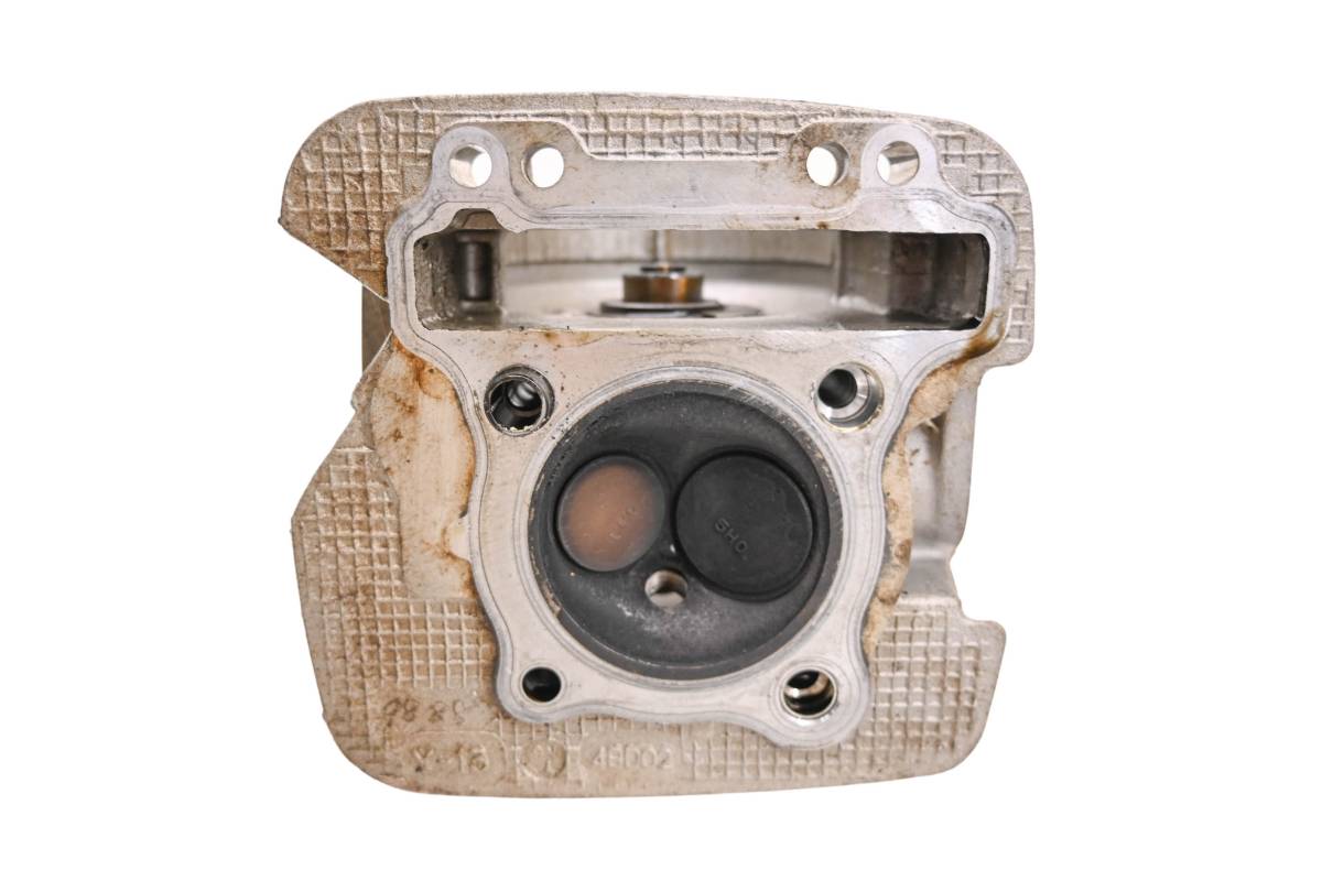 Cylinder head is in good condition. Valves and springs are included. Cam journals are smooth. Combustion chamber has some carbon build up. Comes as pictured. Was removed from a 1998 Yamaha Timberwolf 250 4x4 YFB250FW.