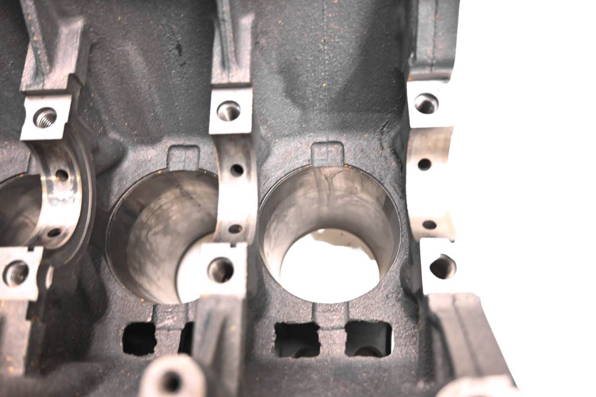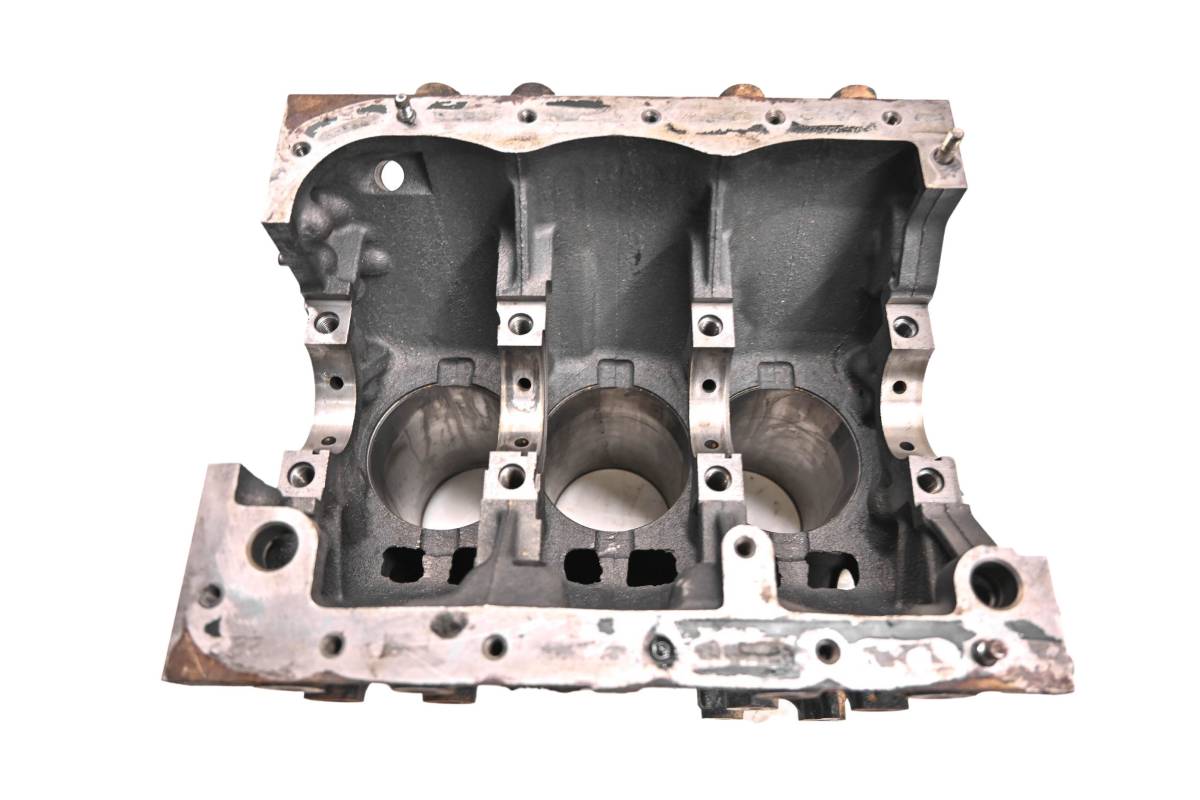 Crankcase is in good condition with no cracks or repairs. Finish has light wear. Bearings are missing. Bores have light wear and measure 72mm. Comes as pictured. Was removed from a 2013 Kawasaki Mule 4010 Diesel 4x4 KAF950D with 10294 miles and 1883 hours.