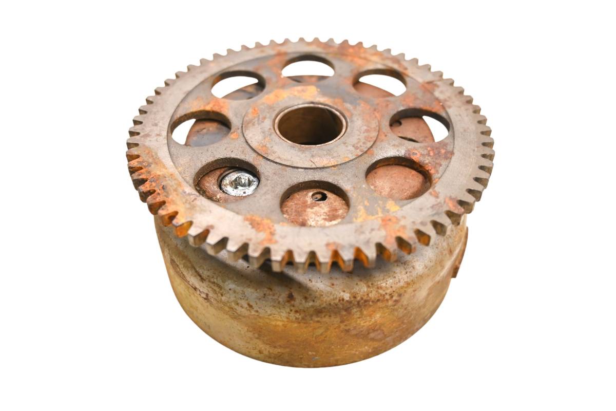 Flywheel is in good working condition. Starter clutch is in good shape. Light surface rust. Comes as pictured. Was removed from a 1998 Kawasaki Bayou 220 2x4 KLF220.