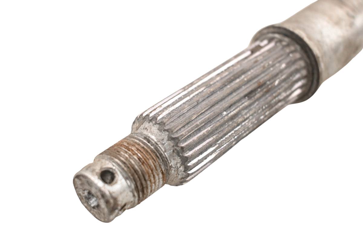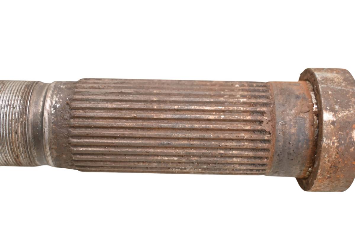 Axle is straight and in good condition. Finish has light wear. Splines and threads are straight. Comes as pictured. Was removed from a 1995 Honda Fourtrax 300 2x4 TRX300.