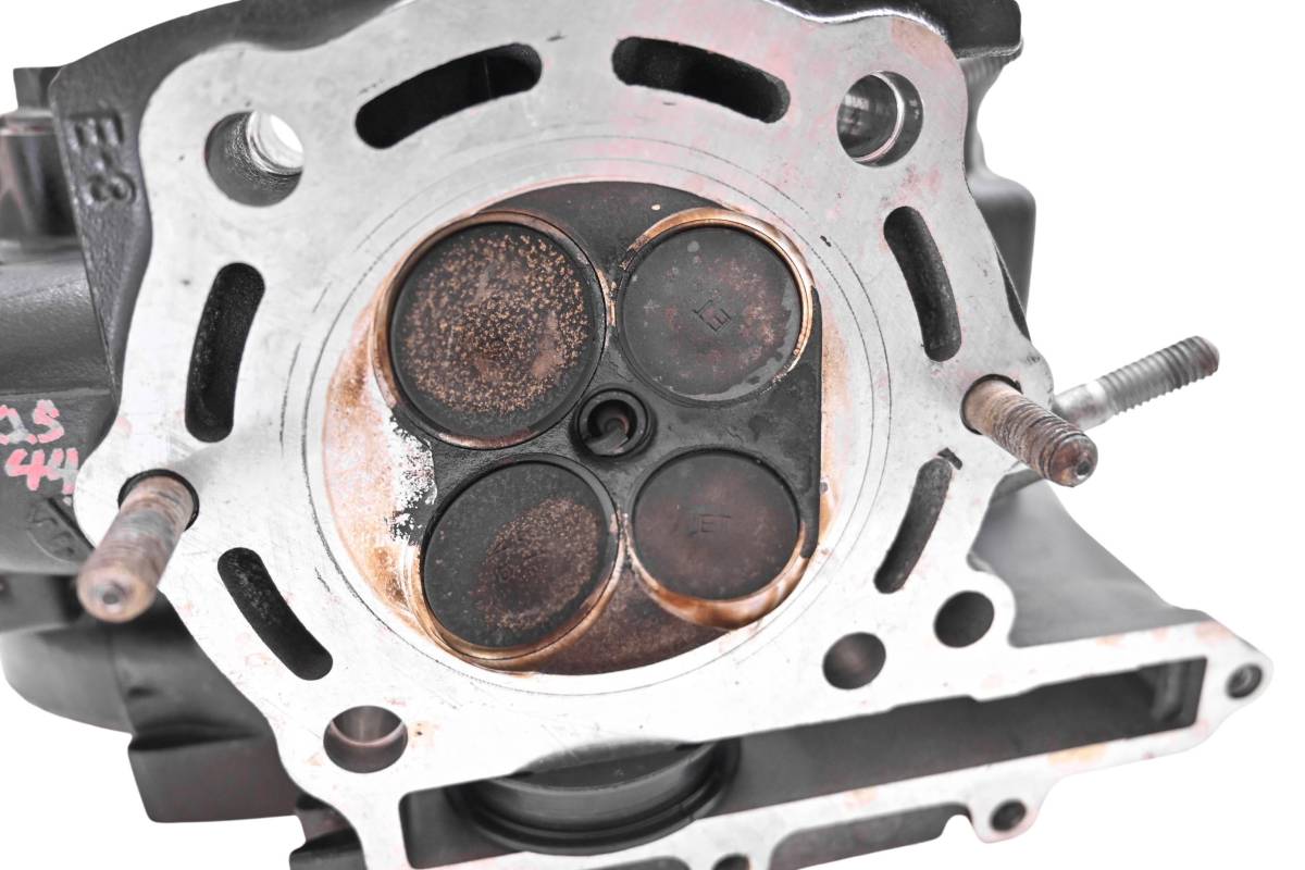Cylinder head is in good condition. Valves and springs are included. Cam journals are smooth. Combustion chamber has some carbon build up. Comes as pictured. Was removed from a 2005 Kawasaki KLR250.