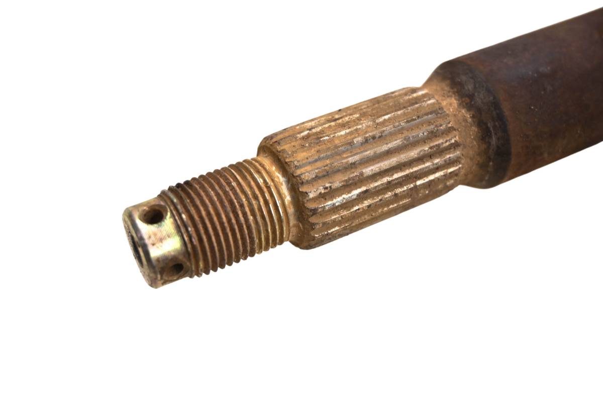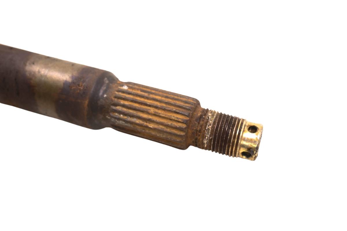 Axle is straight and in good condition. Finish has light wear. Splines and threads are straight. Comes as pictured. Was removed from a 2000 Polaris Trail Blazer 250 2x4.