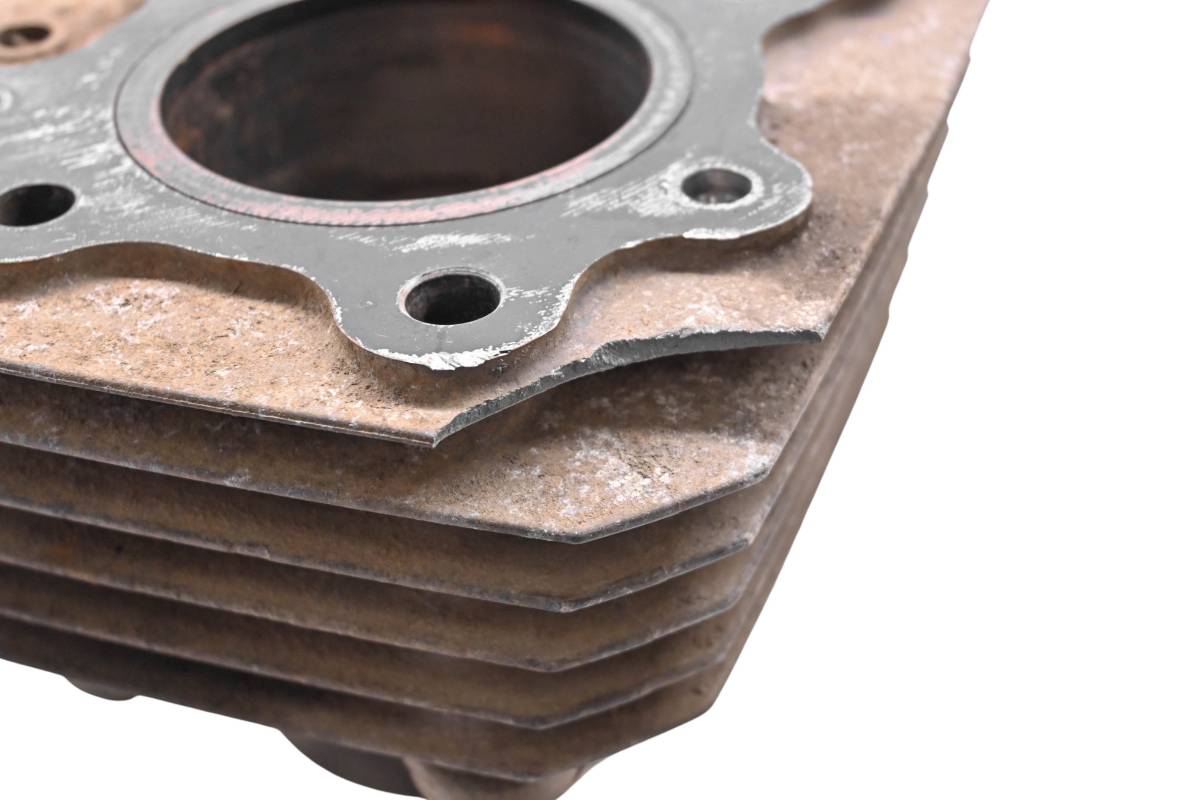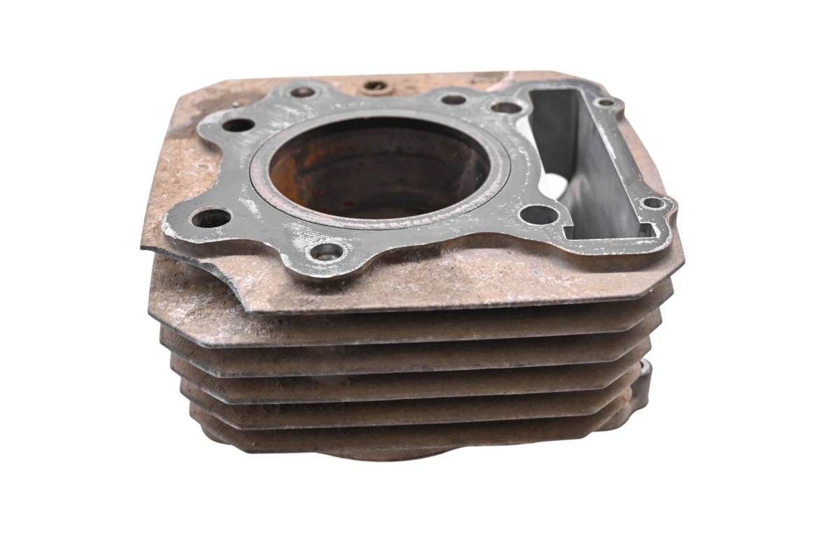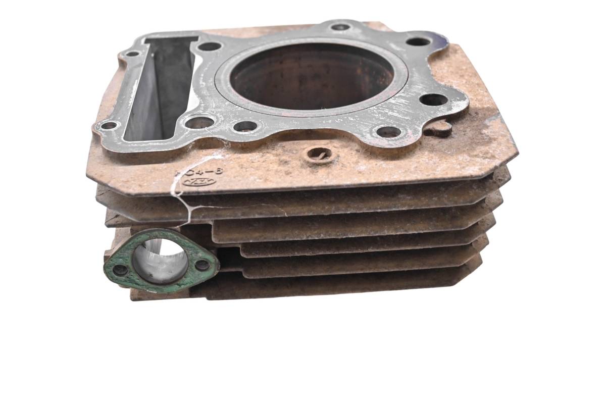 Cylinder is in poor condition. Has a fin broken off. Bore has some light pitting and scoring, needs to be bored over or resleeved. Bore measures 74mm. Comes as pictured. Was removed from a 1993 Honda Fourtrax 300 4x4 TRX300FW.