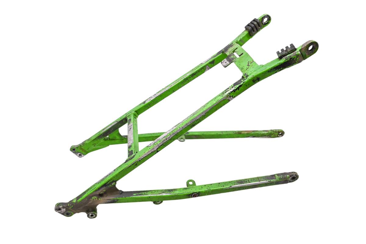 Subframe is straight and in poor condition. One threaded tab has a bolt snapped off in threads. Finish has light wear. Comes as pictured. Was removed from a 1990 Kawasaki KX125.