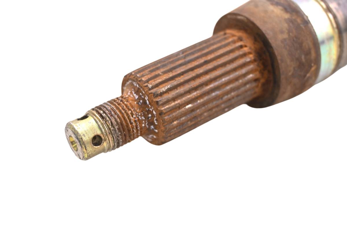 Axle is straight and in good condition. Finish has light wear. Splines and threads are straight. Comes as pictured. Was removed from a 1999 Yamaha Grizzly 600 4x4 YFM600F.