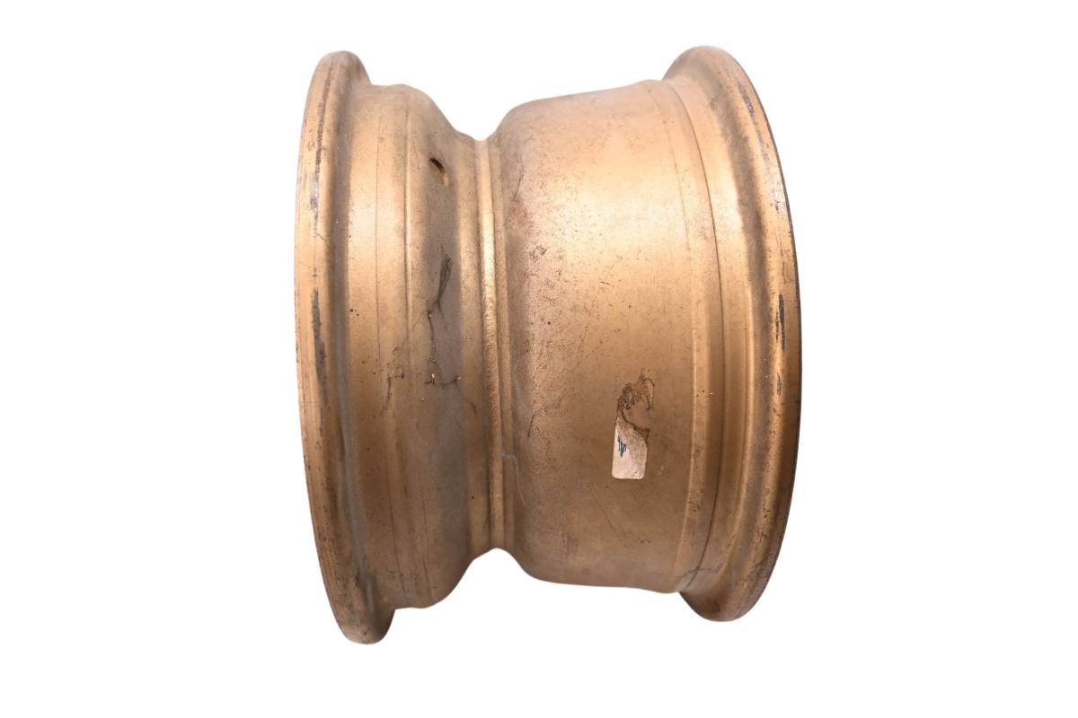 Rim is straight and in good condition. Outside edge has some dings and wear from use. Comes as pictured. Was removed from a 1986 Polaris Trail Boss 250 2x4.