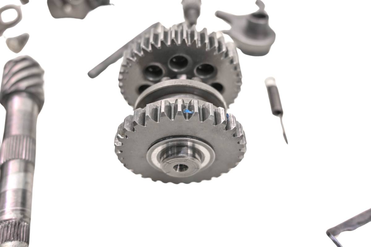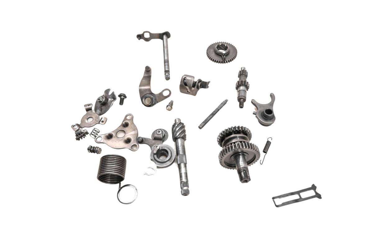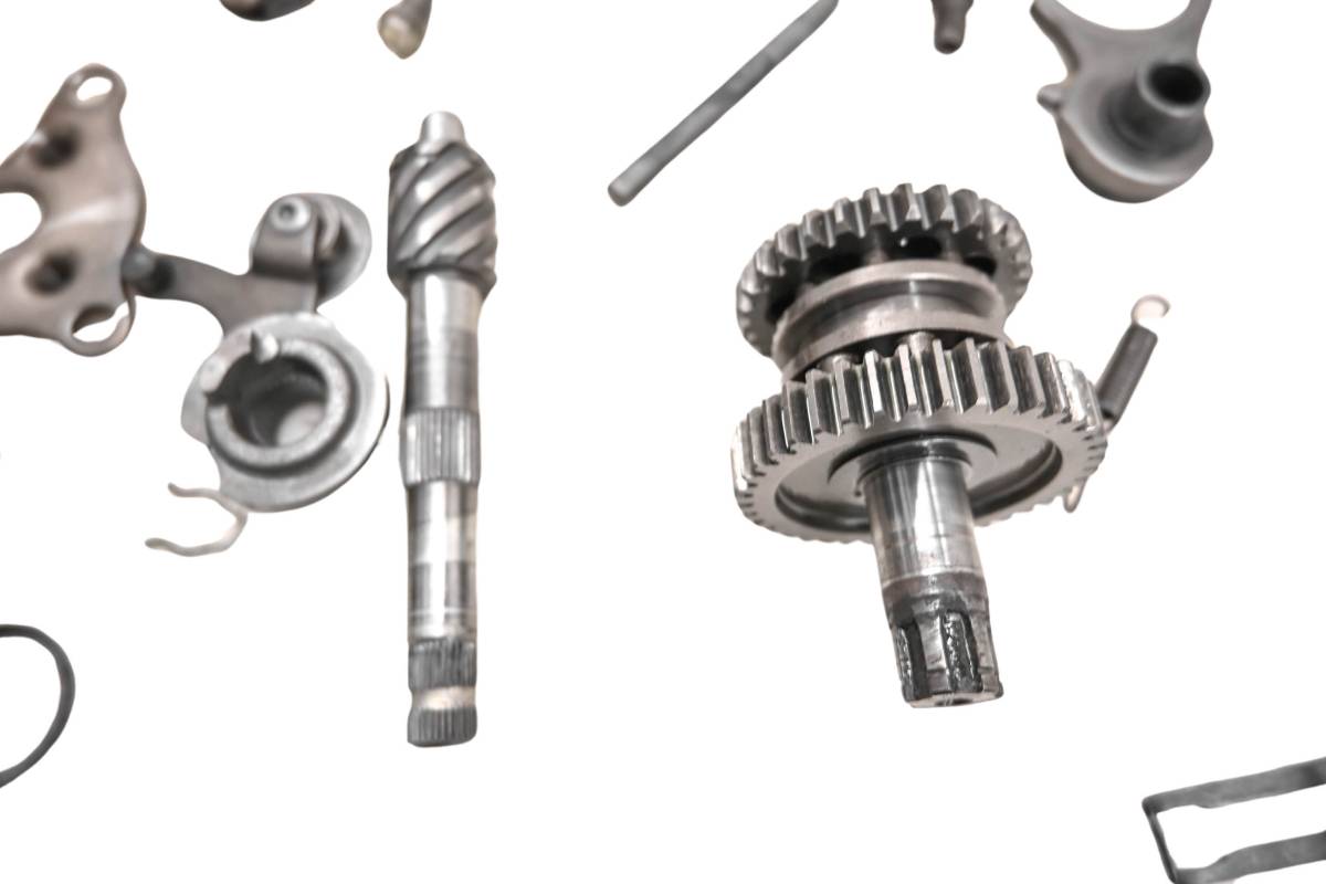 Transmission is in good condition. Gears and teeth have only light wear. Forks are straight. Comes as pictured. Was removed from a 1985 Suzuki JR50F Mini.