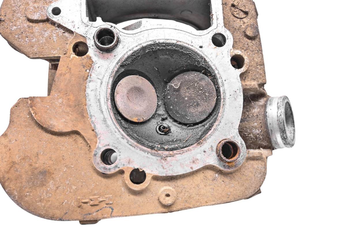 Cylinder head is in good condition. Valves and springs are included. Cam journals are smooth. Combustion chamber has some carbon build up. Comes as pictured. Was removed from a 2003 Kawasaki Prairie 360 4x4 KVF360.