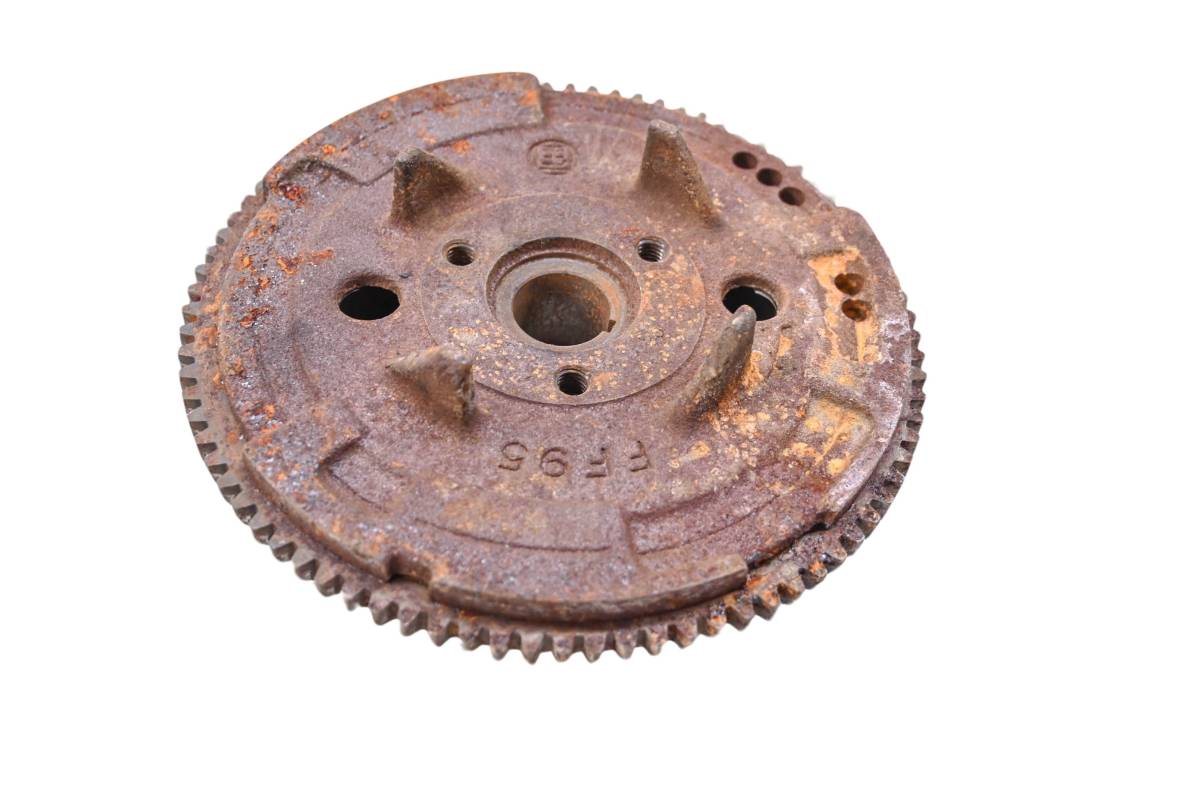 Flywheel is in good working condition. Finish has light wear from use. Comes as pictured. Was removed from a 2000 Polaris Sportsman 335.