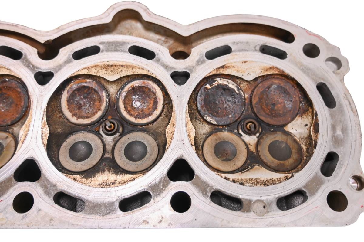 Cylinder head is in poor condition. Valves and springs are included. Cam journals have wear. Combustion chamber has slight chipping & carbon build up. Comes as pictured. Was removed from a 2021 Can-Am Ryker Rally 900.