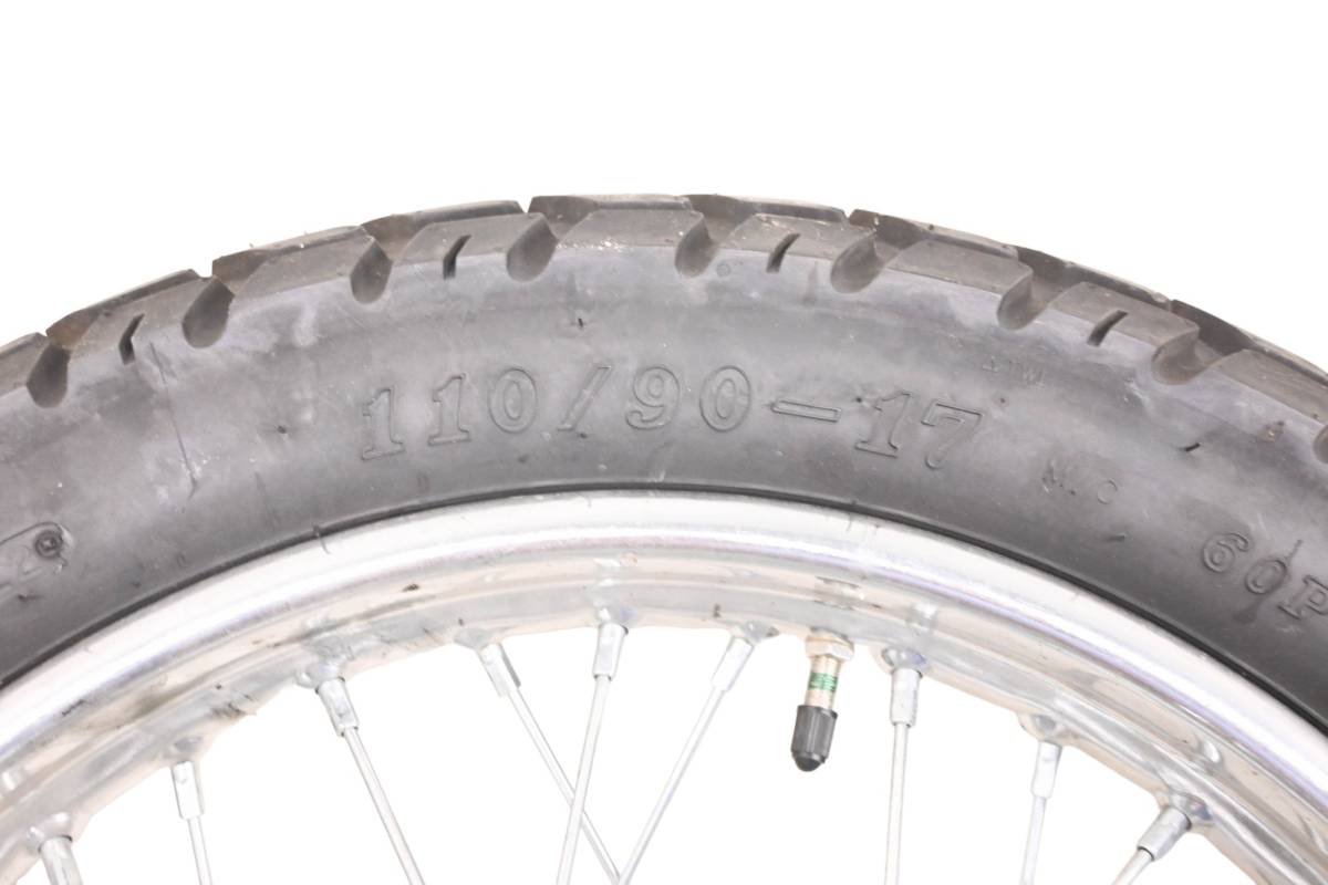 Rim is in good condition. Has light wear and scuff marks. Tire is in good shape with no plugs or holes. Comes as pictured. Was removed from a running 2023 Honda XR150LE with 34 miles.