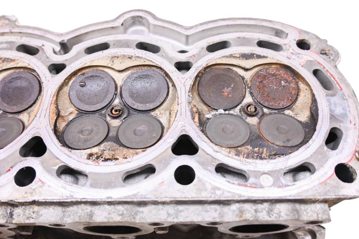 Cylinder head is in good condition. Valves and springs are included. Cam journals are smooth. Combustion chamber has some carbon build up. Comes as pictured. Was removed from a 2014 Sea-Doo Spark 900 ACE 3up with IBR.