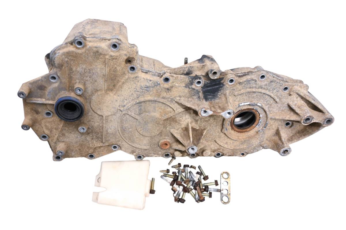Gear case is in poor condition. One bolt is snapped off in threads. Internals have been removed. Finish has light wear. Comes as pictured. Was removed from a 2009 Polaris Sportsman 500 4x4.
