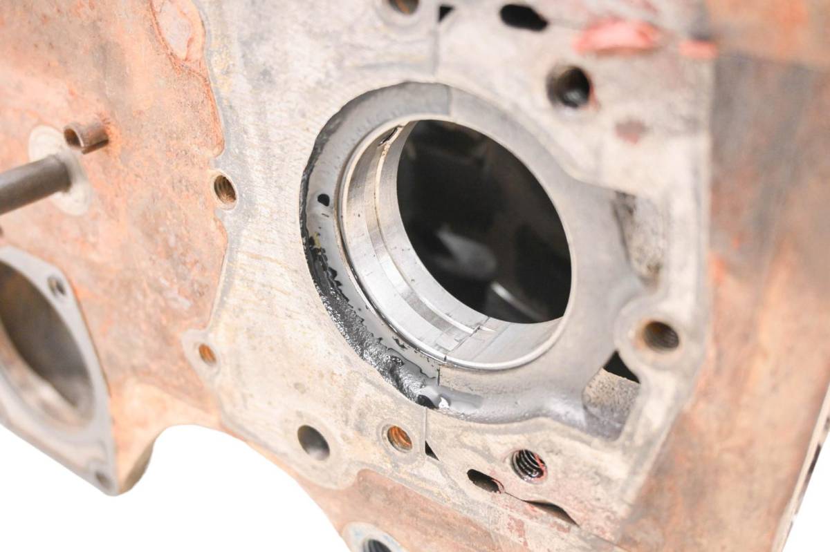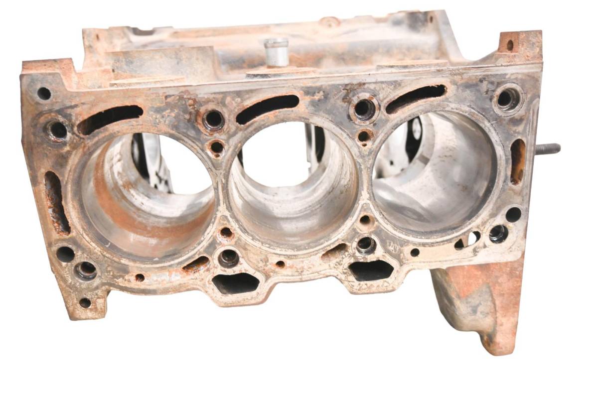 Crankcase is in poor condition. Finish has light wear. Bearings are good. Bores are worn with pitting, and measure 75mm. Comes as pictured. Was removed from a 2018 Cat CUV105D.