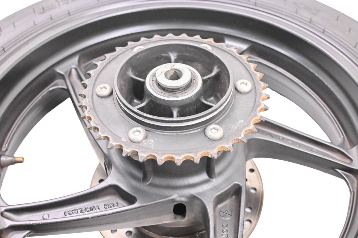 Rim is in good condition. Has light wear and scuff marks. Tire is in good shape with no plugs or holes. Comes as pictured. Was removed from a running 2015 Honda CBR300R with 8055 miles.