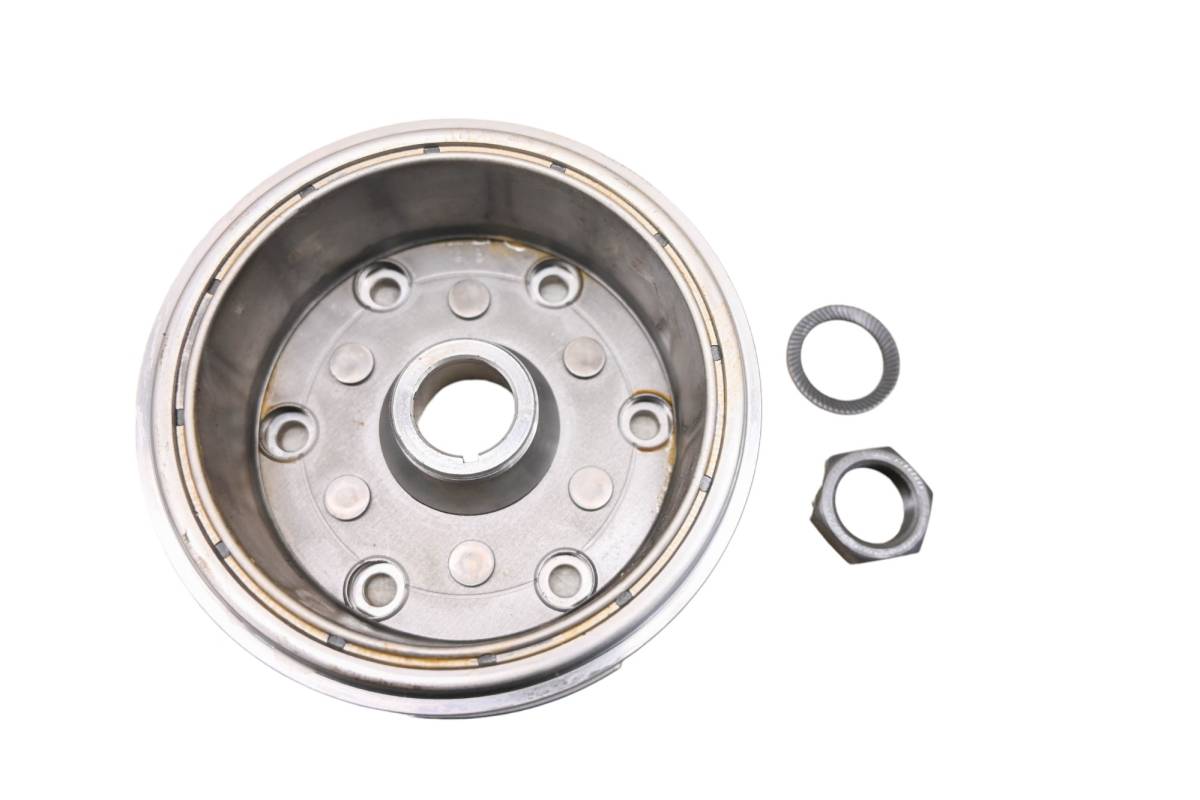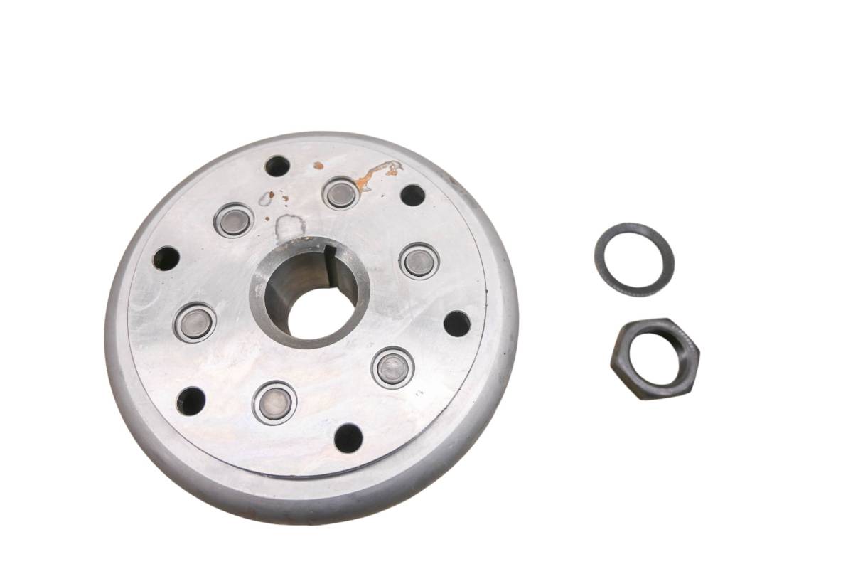 Flywheel is in good working condition. Finish has light wear from use. Comes as pictured. Was removed from a running 2004 Can-Am Quest Max 650 4x4 Bombardier.