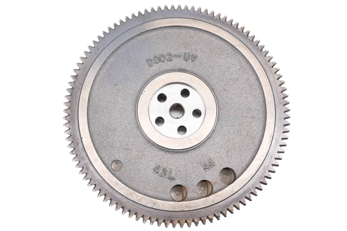 Flywheel is in good working condition. Finish has light wear from use. Comes as pictured. Was removed from a 2005 Kubota RTV900G and 1260 hours.