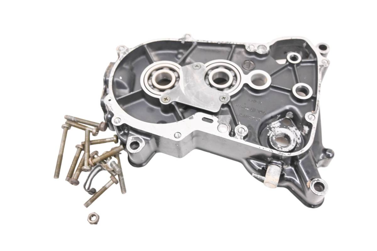 Right crankcase is in good condition with no cracks or repairs. Finish has light wear. Bearings are good. Comes as pictured. Was removed from a 2004 Kawasaki KFX50.