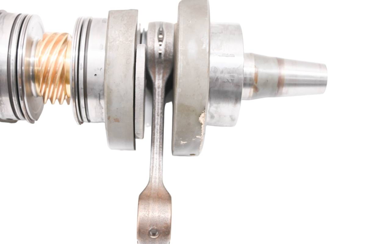 Crank is in poor condition. Journals are smooth, splines and threads are straight. Rod bearing has excessive play. Big end clearance is .90mm. Comes as pictured. Was removed from a 2012 Arctic Cat F800 Sno Pro.