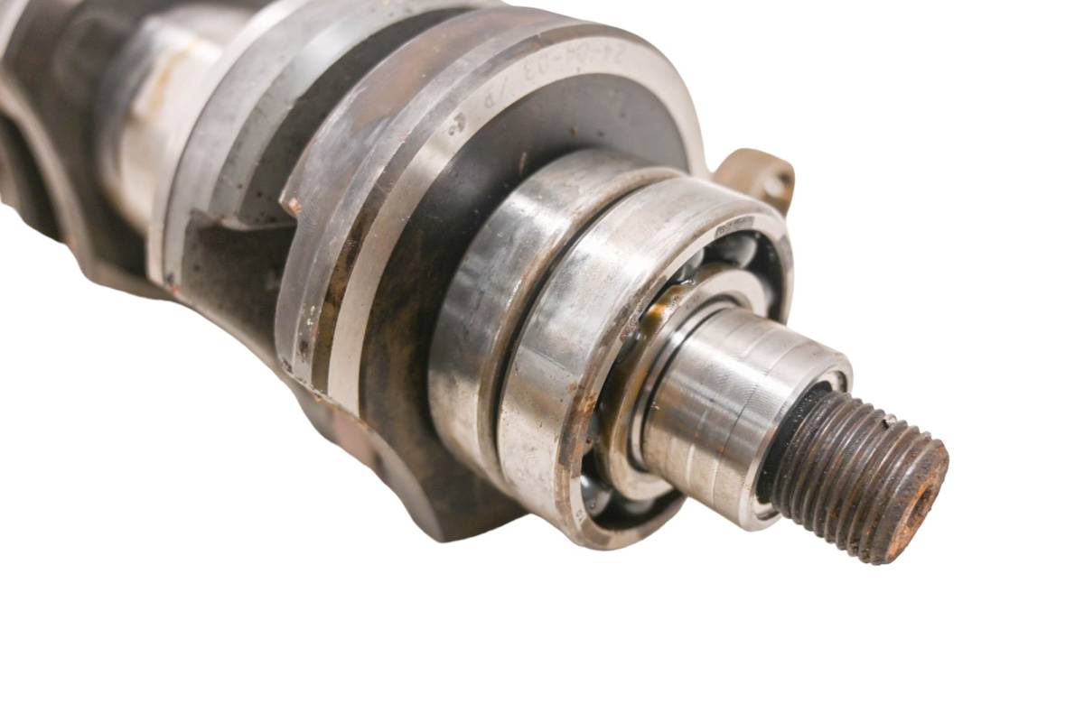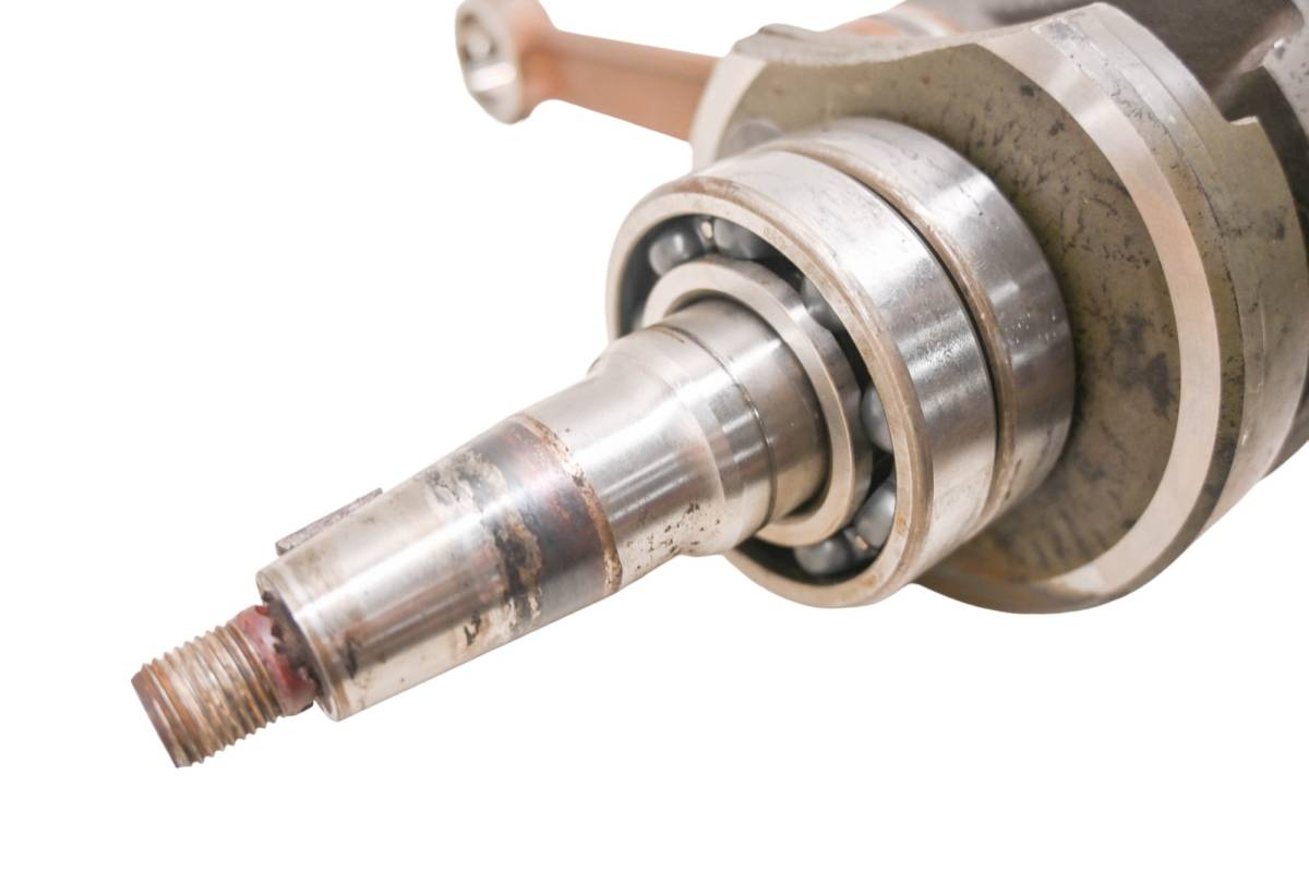 Crank is in good condition. Journals are smooth, splines and threads are straight. Big end clearance is .38mm , .50mm and .38mm. Comes as pictured. Was removed from a 2001 Polaris Virage TXi.