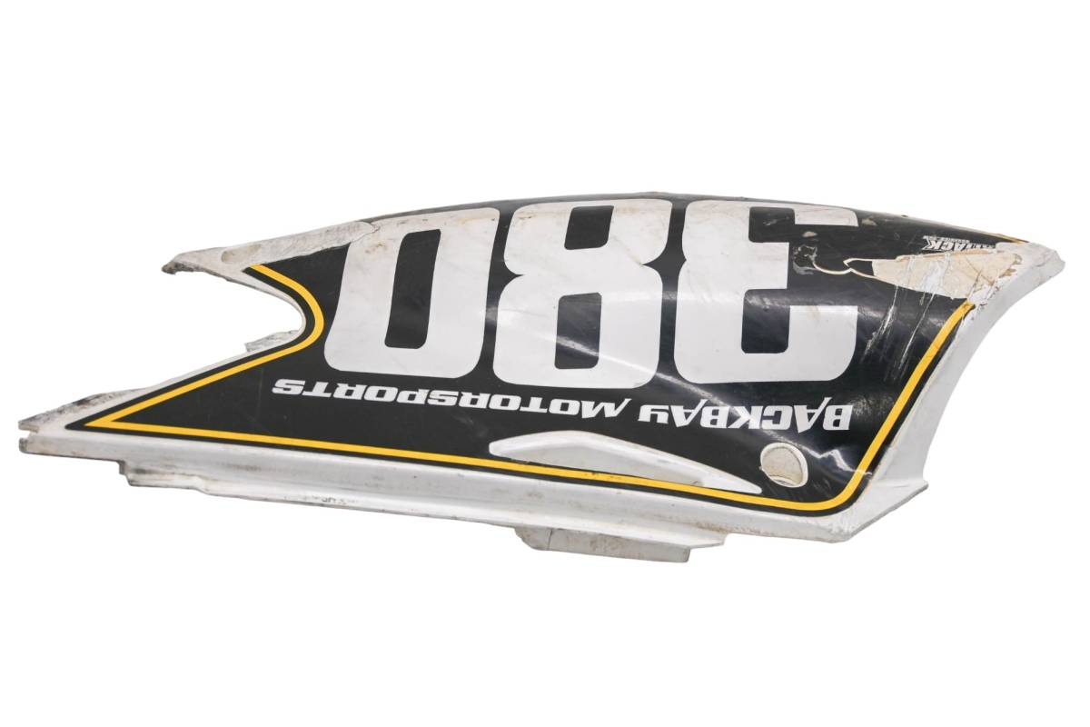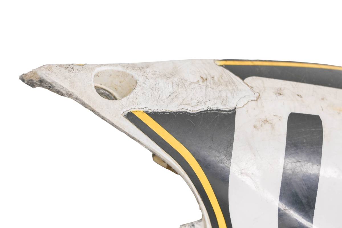 Cover is in fair condition with no cracks. Finish has scratches. Tabs are intact. Panel has decal. Comes as pictured. Was removed from a 2006 Suzuki RMZ250.