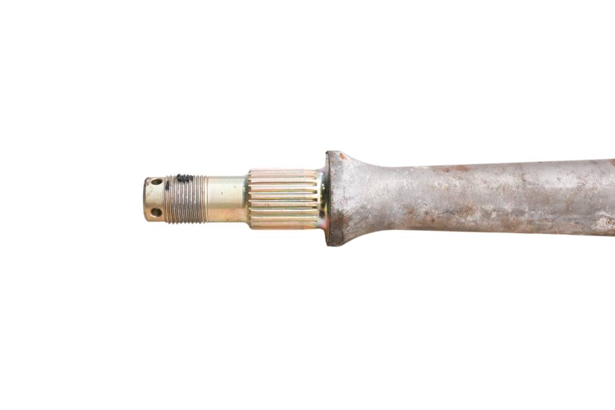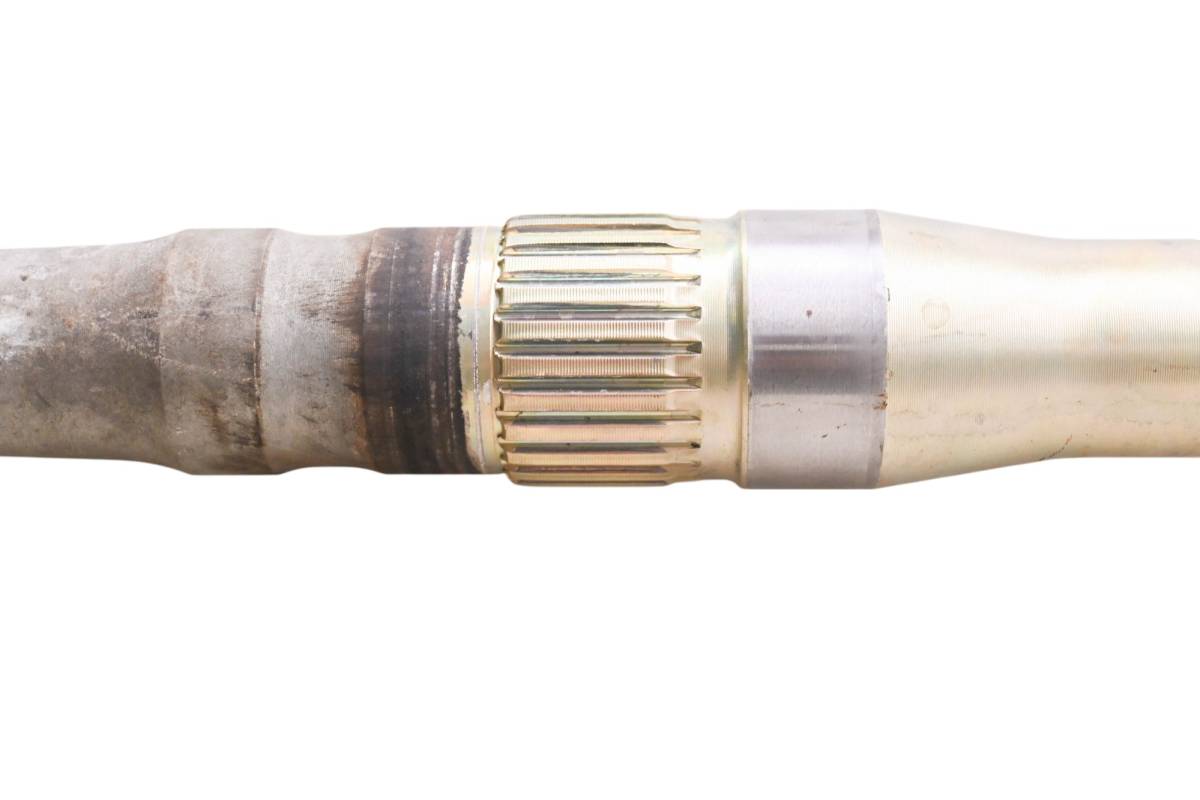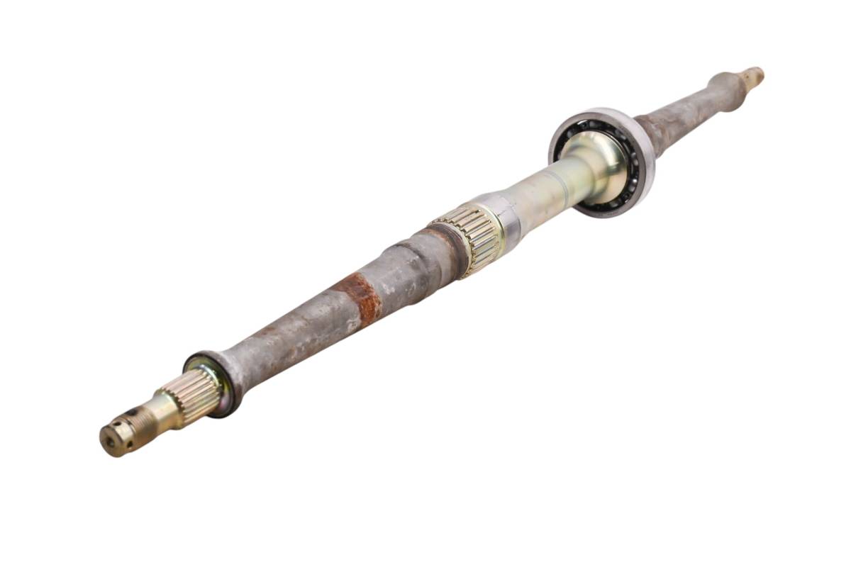 Axle is straight and in good condition. Finish has light wear. Splines and threads are straight. Comes as pictured. Was removed from a 2002 Kawasaki Prairie 650 4x4 KVF650A.