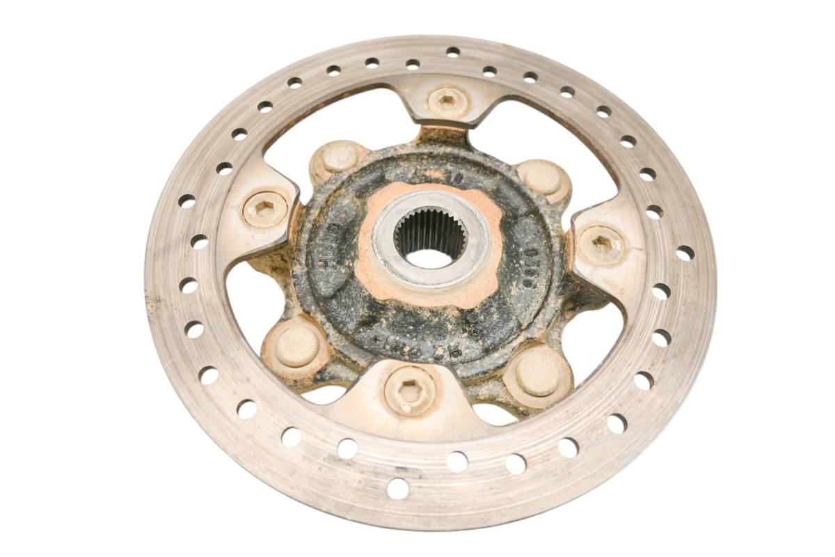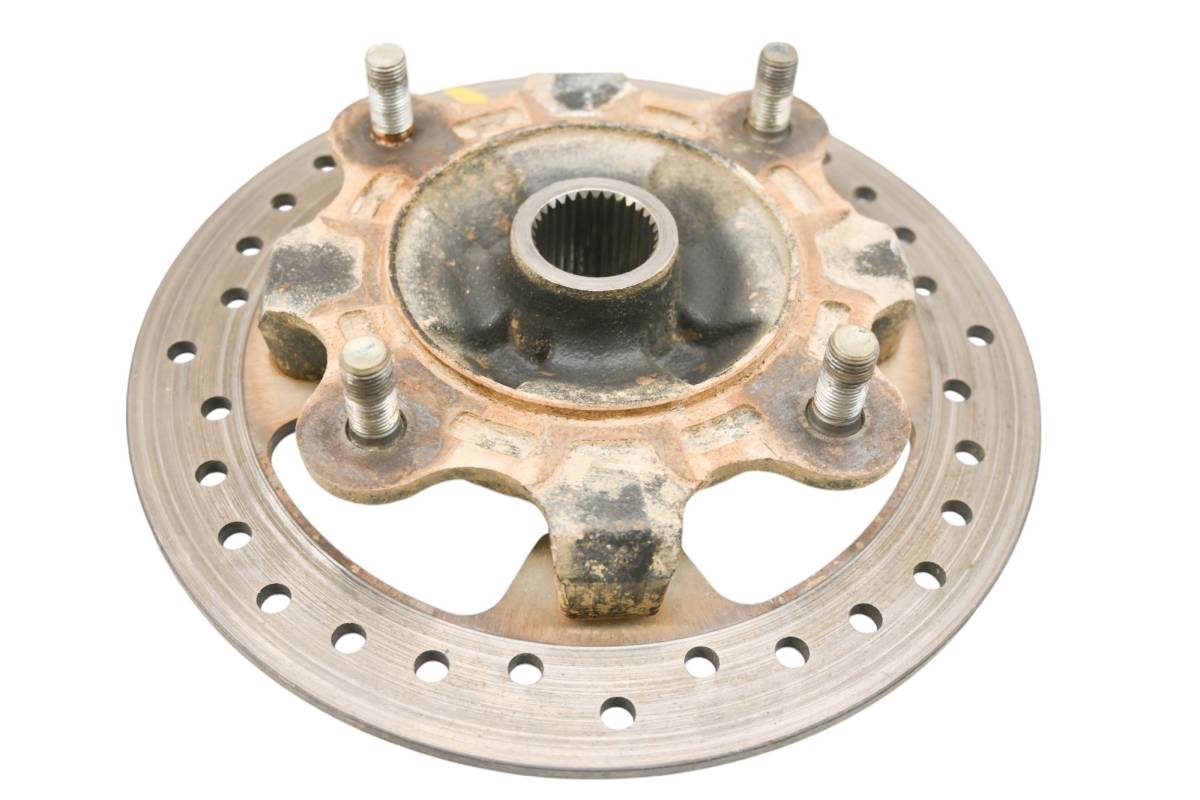 Hub and rotor are in good condition. Rotor is straight and has light wear from use. Comes as pictured. Was removed from a running 2020 Kawasaki Teryx KRX 1000 KRF1000ALF with 5050 miles and 293 hours.