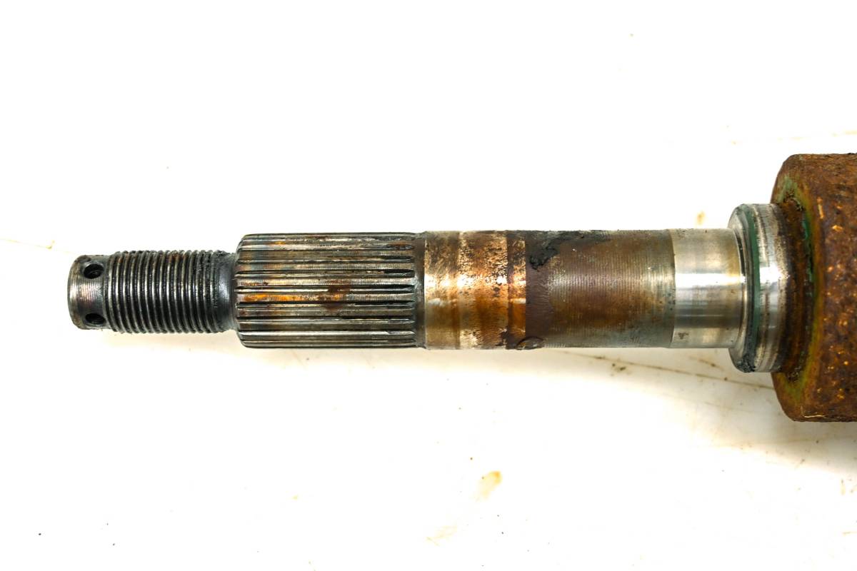 Axle is in good condition. Splines and threads are straight, boots are not ripped. Comes as pictured. Was removed from a 2011 Kawasaki Mule 4010 Diesel 4x4 KAF950 with 8526.5 miles and 2714 hours.