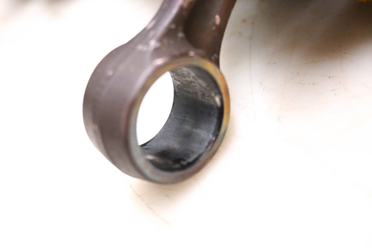 Crank is in poor condition. Journals are smooth, splines and threads are straight. Big end clearance is .508mm. Crank and bearings are rusty. Comes as pictured. Was removed from a 2001 Sea-Doo RX 947.
