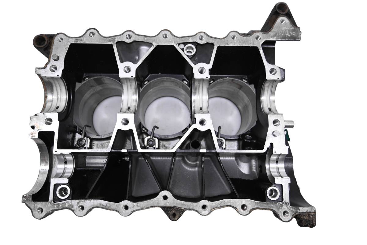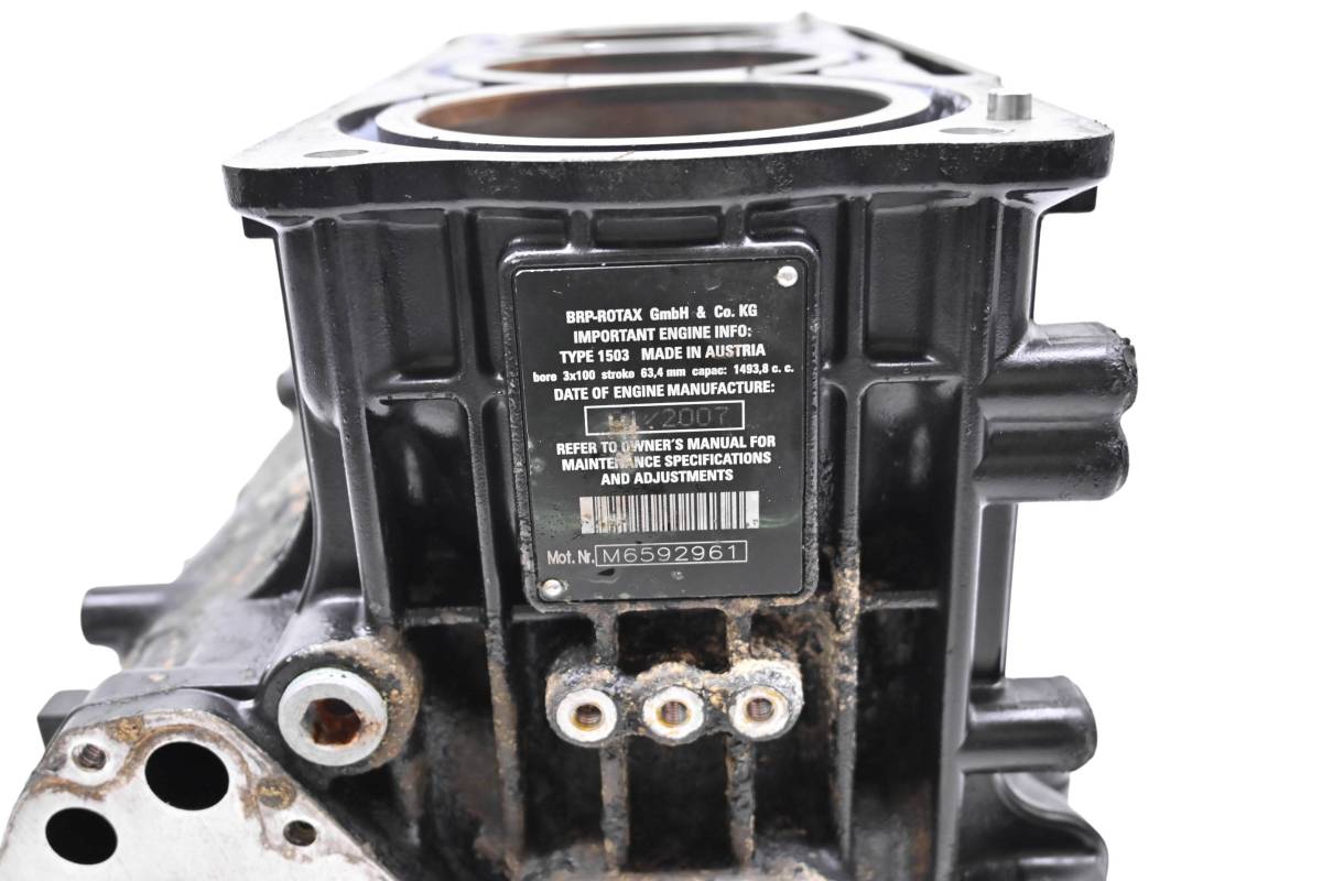 Crankcase is in good condition with no cracks or repairs. Finish has light wear. Bearings are good. Pistons are in good shape. Bores have light wear and measure 100mm. Comes as pictured. Was removed from a 2007 Sea-Doo RXT 215 4-Tec.