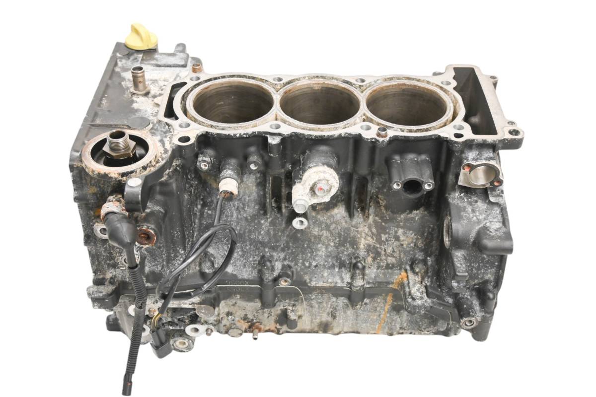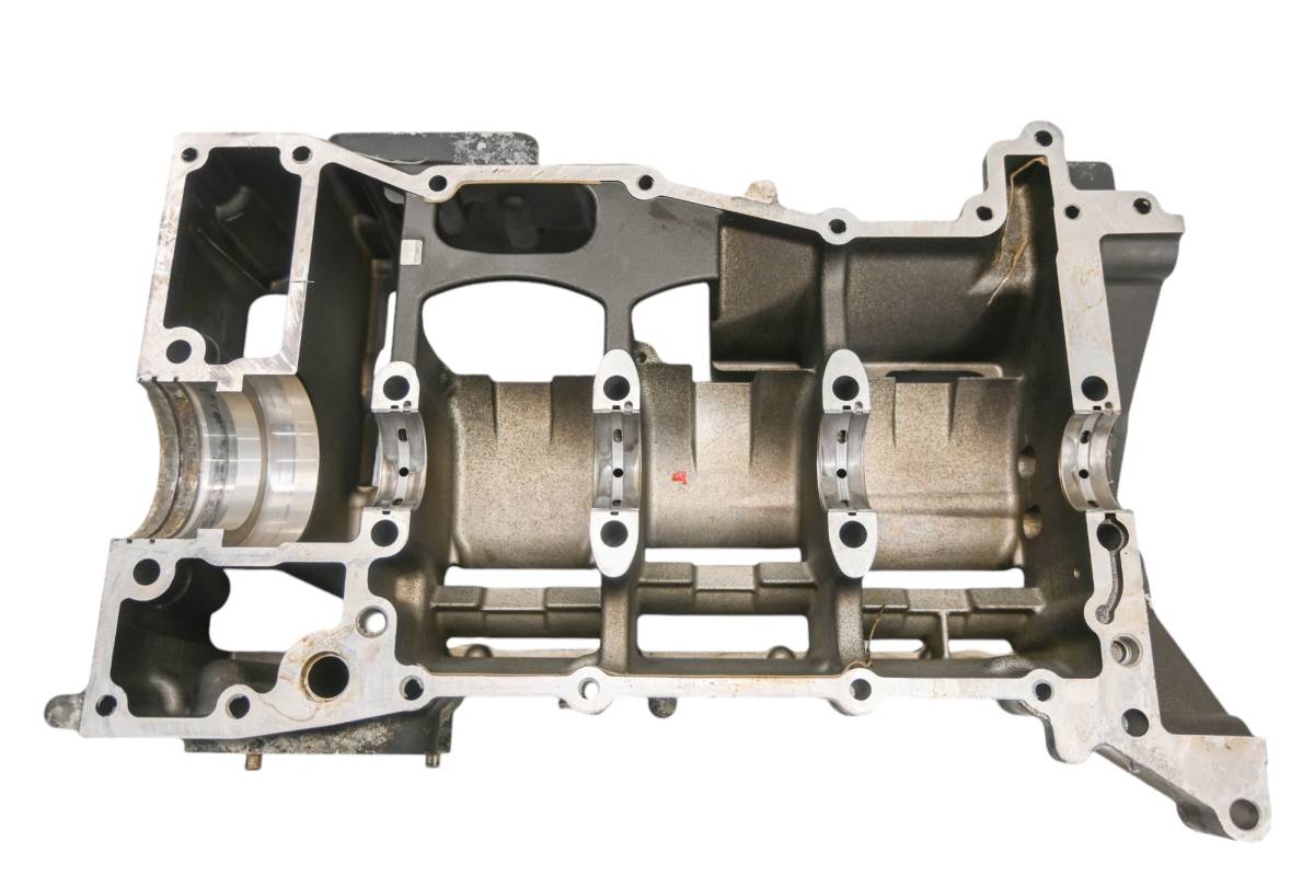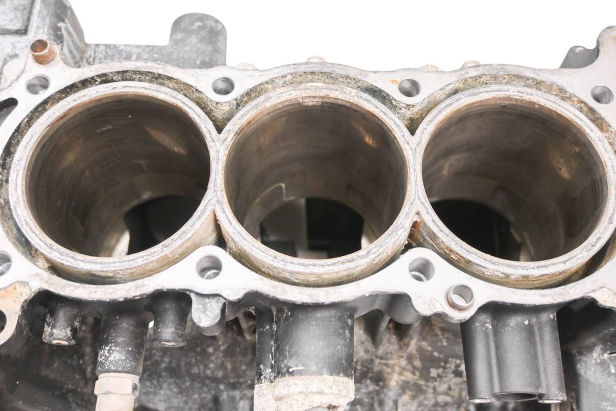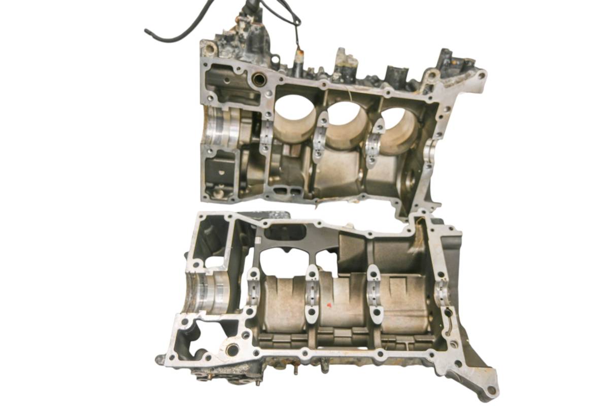 Crankcase is in good condition with no cracks or repairs. Finish has light wear. Bearings are good. Bores have light wear and measure 82mm. Comes as pictured. Was removed from a 2016 Yamaha Waverunner V1 VX1050E and 409.3 hours.