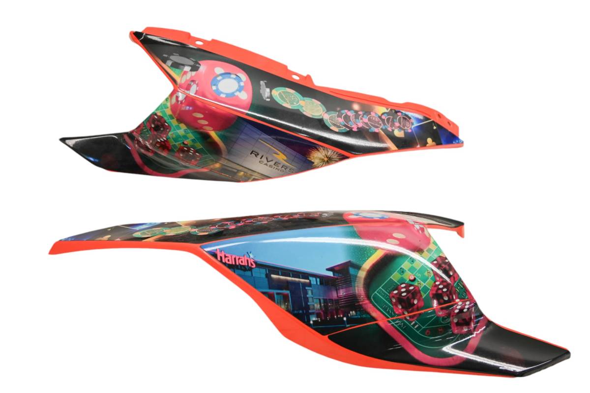 Side panels are in good condition with no cracks. Finish has light wear. Comes as pictured. Was removed from a 2021 Can-Am Ryker Rally 900 with 9675 miles.