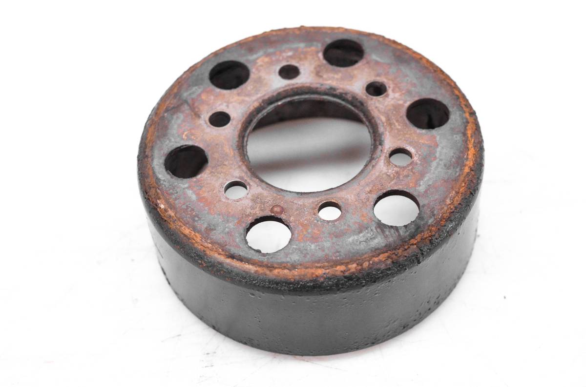 Flywheel is in good working condition. Finish has light wear from use. Comes as pictured. Was removed from a 2005 Sea-Doo GTI RFI LE with 582.1 miles and 214.3 hours.