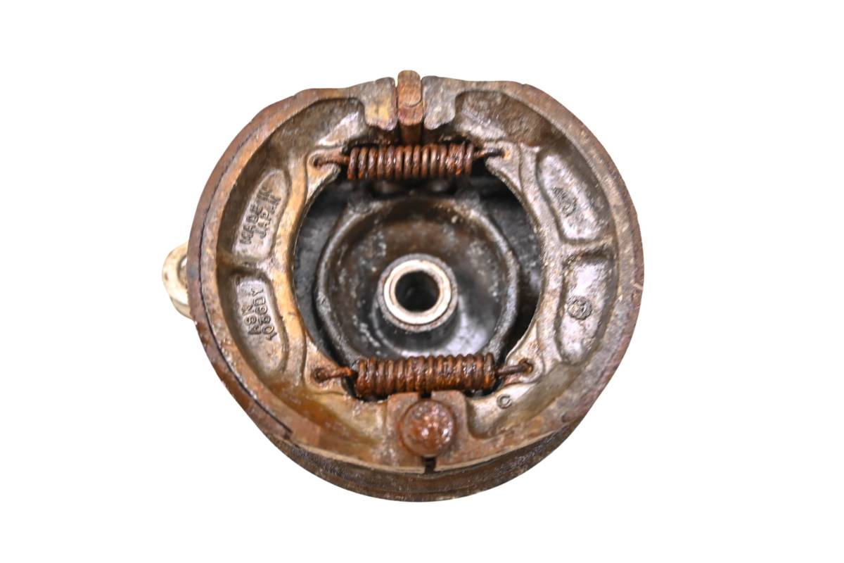 Brake drum is in good working condition with no cracks or repairs. Finish has light wear. Comes as pictured. Was removed from a 1985 Suzuki JR50F Mini.