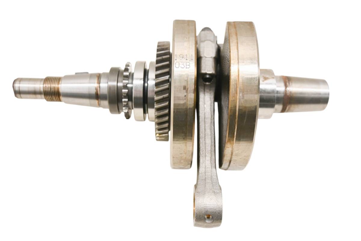 Crank is in good condition. Journals are smooth, splines and threads are straight. Big end clearance is .25mm. Comes as pictured. Was removed from a 2005 John Deere Trail Buck 650 4x4.