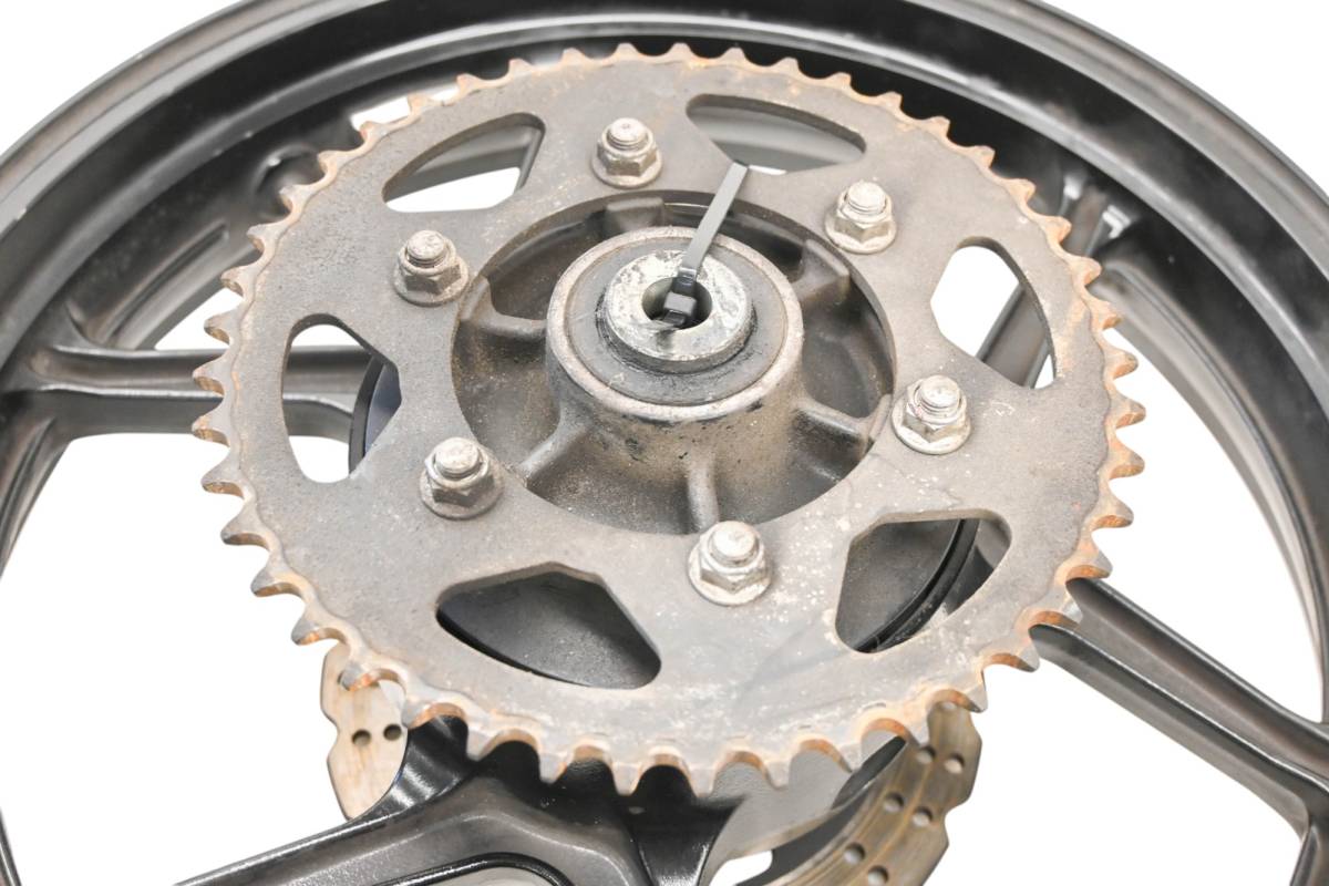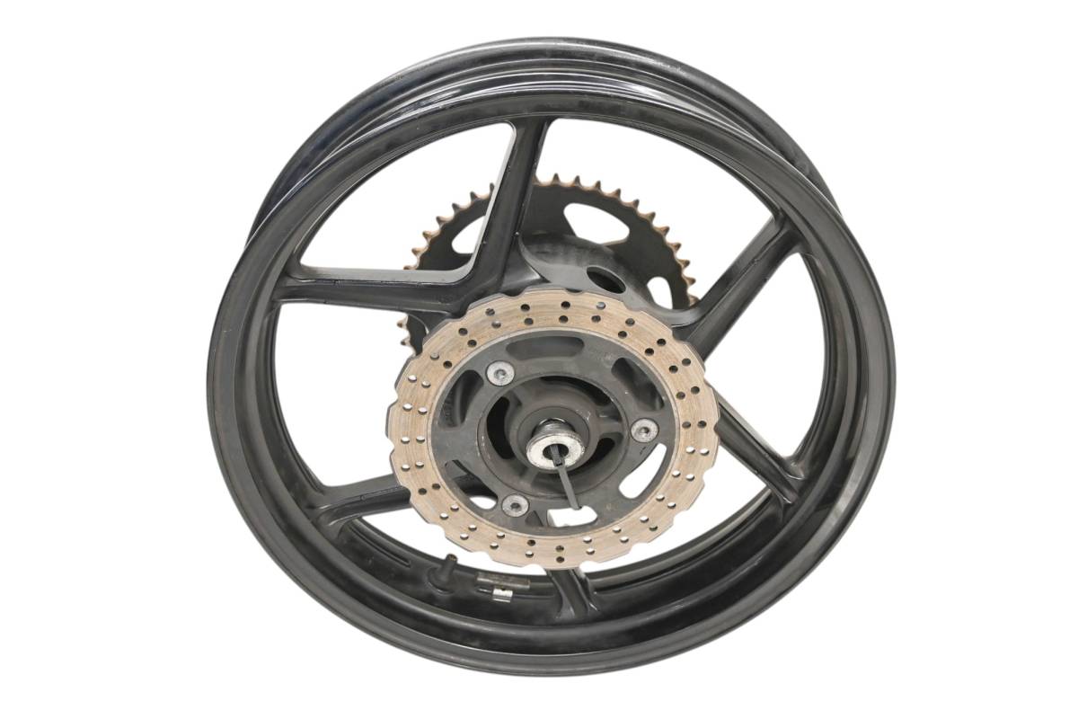 Rim is straight and in good condition. Outside edge has some dings and wear from use. Comes as pictured. Was removed from a 2009 Kawasaki Ninja 250 EX250 with 7930 miles.