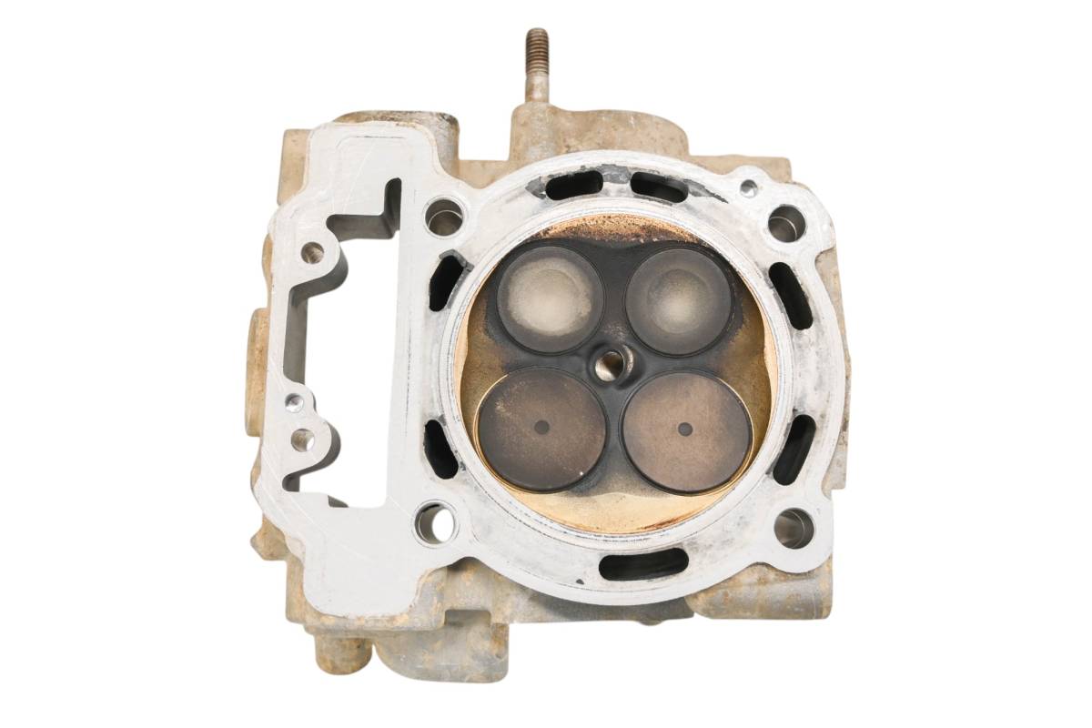 Cylinder head is in good condition. Valves and springs are included. Cam journals are smooth. Combustion chamber has some carbon build up. Comes as pictured. Was removed from a 2016 Can-Am Maverick 1000R XRS Turbo with 2662 miles and 201 hours.