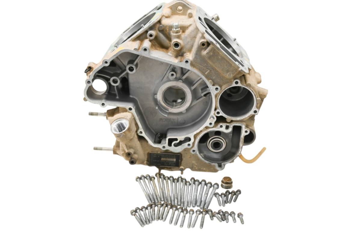 Crankcase is in good condition with no cracks or repairs. Finish has light wear. Bearings are good. Comes as pictured. Was removed from a 2016 Can-Am Maverick 1000R XRS Turbo with 2662 miles and 201 hours.