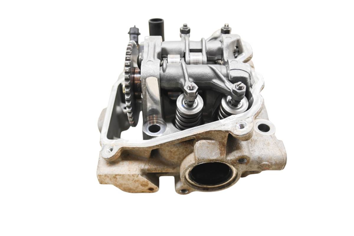Cylinder head is in good condition. Valves and springs are included. Cam journals are smooth. Combustion chamber has some carbon build up. Comes as pictured. Was removed from a 2016 Can-Am Outlander 450 L 4x4.