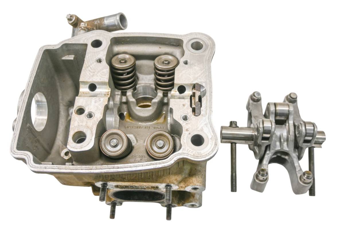Cylinder head is in good condition. Valves and springs are included. Cam journals are smooth. Combustion chamber has some carbon build up. Comes as pictured. Was removed from a 2002 Can-Am Quest 650 XT 4x4.