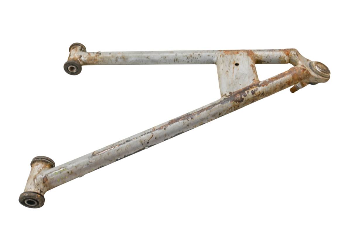 A-Arm is straight and in good condition. Finish has light wear. Bushings are good. Comes as pictured. Was removed from a 2008 Polaris Outlaw 525 S.