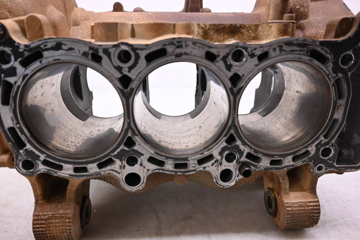 Crankcase is in fair condition with no cracks or repairs. Significant wear on case near one of the bearings. Finish has light wear. Bores have light wear and measure 80mm. Comes as pictured. Was removed from a 2019 Yamaha YXZ1000R.