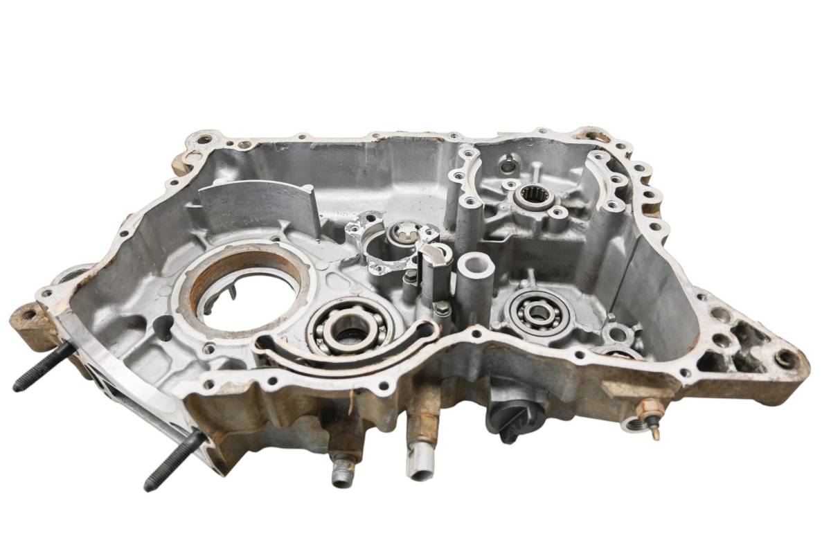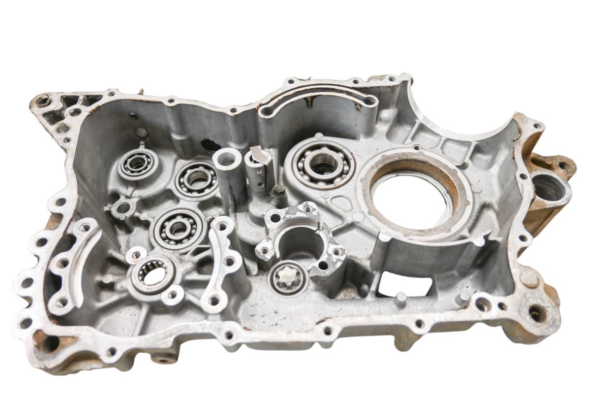 Left crankcase is in good condition with no cracks or repairs. Finish has light wear. Bearings are good. Comes as pictured. Was removed from a 2001 Yamaha Grizzly 600 4x4 YFM600F with 1343 miles.