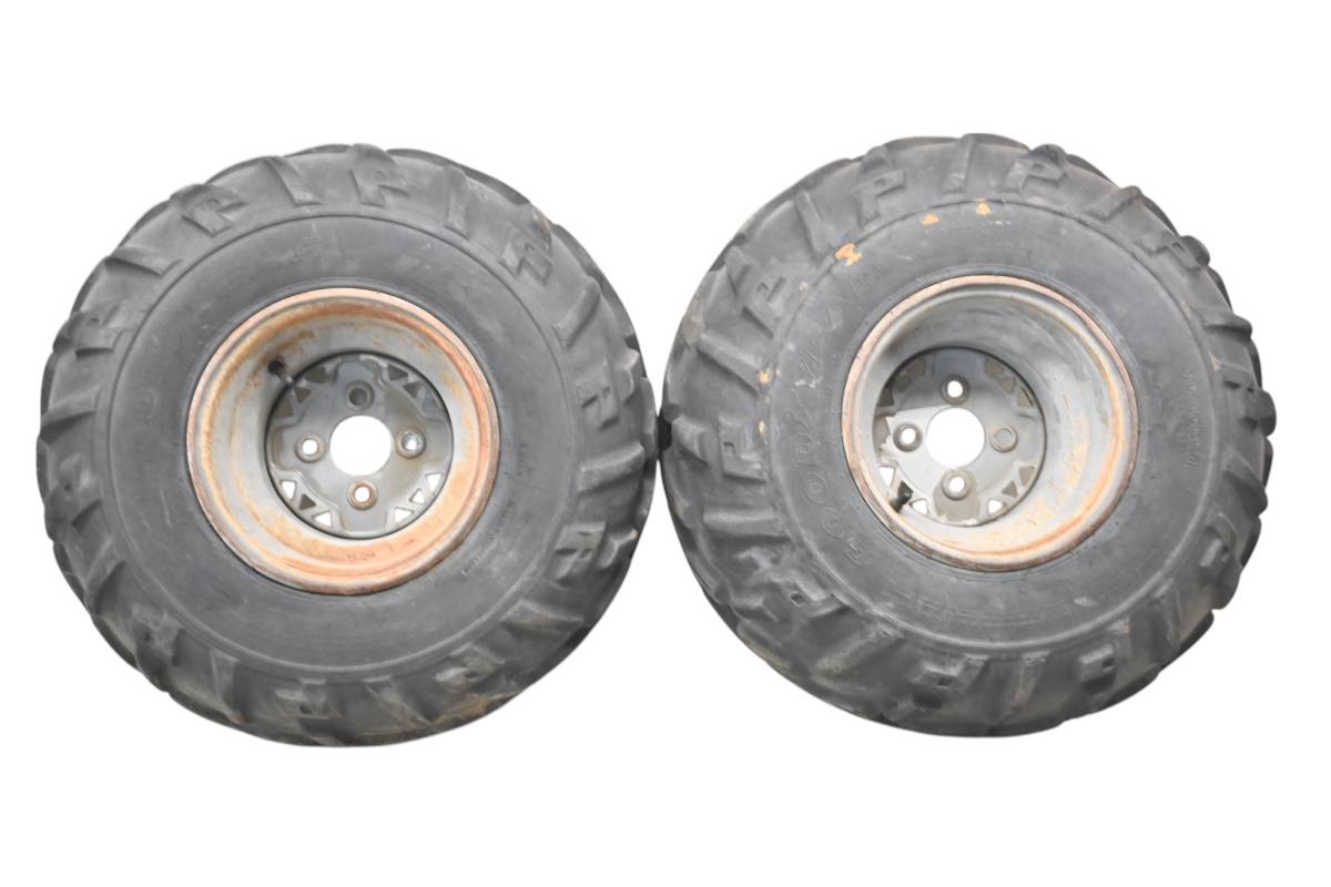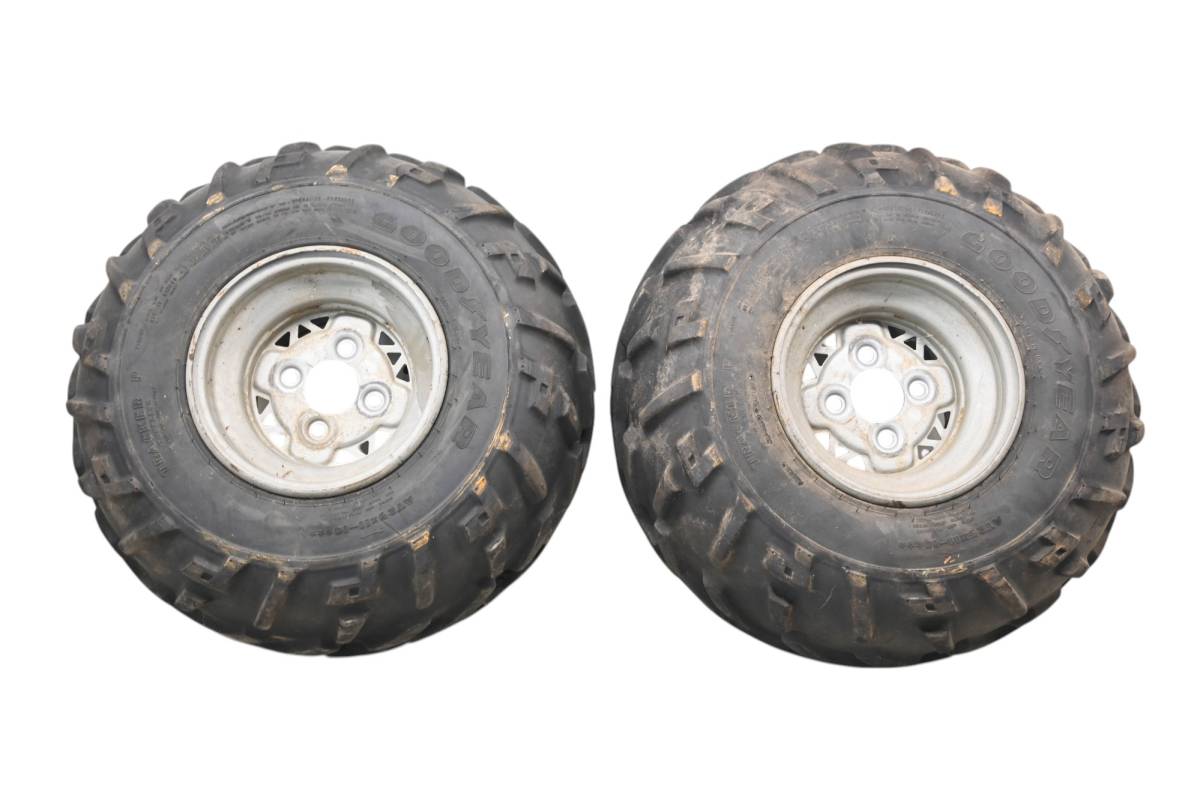 Rims are in good condition. Have light wear and scuff marks. Tires are in good shape with no plugs or holes. Comes as pictured. Was removed from a 2003 Polaris Sportsman 500 6x6.